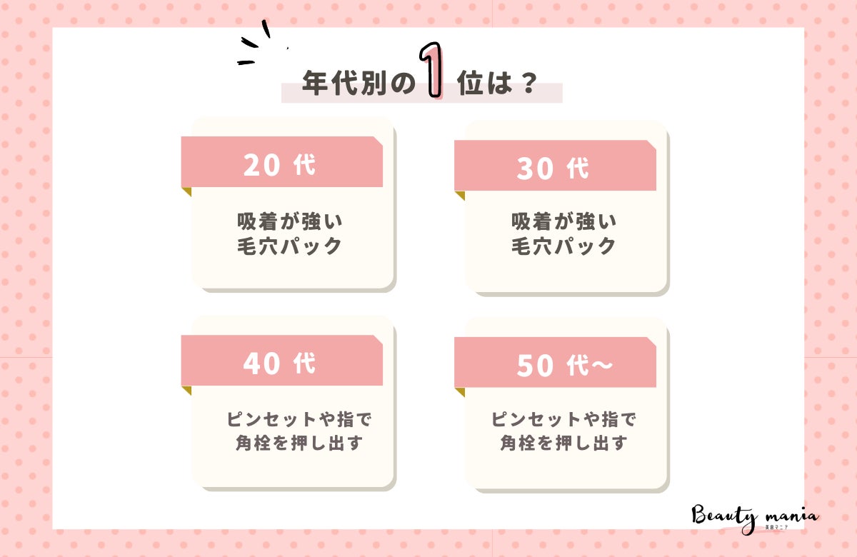 40代の1位『ピンセットや指で角栓を押し出す』(51.9%)
