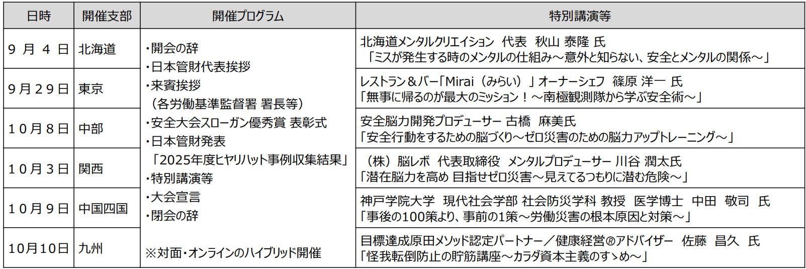 オフィスビルや商業施設等の建物管理運営事業や住宅管理運営事業、不動産ファンドマネジメント事業等を手掛ける日本管財ホールディングス株式会社(本社:東京都中央区、代表取締役社長:福田 慎太郎、以下「当社」)は、グループ会社の日本管財株式会社が事務局をつとめる日本管財安全衛生協力会が、2025年9月4日から2025年10月10日に全国6支部で安全大会を開催したことをお知らせいたします。