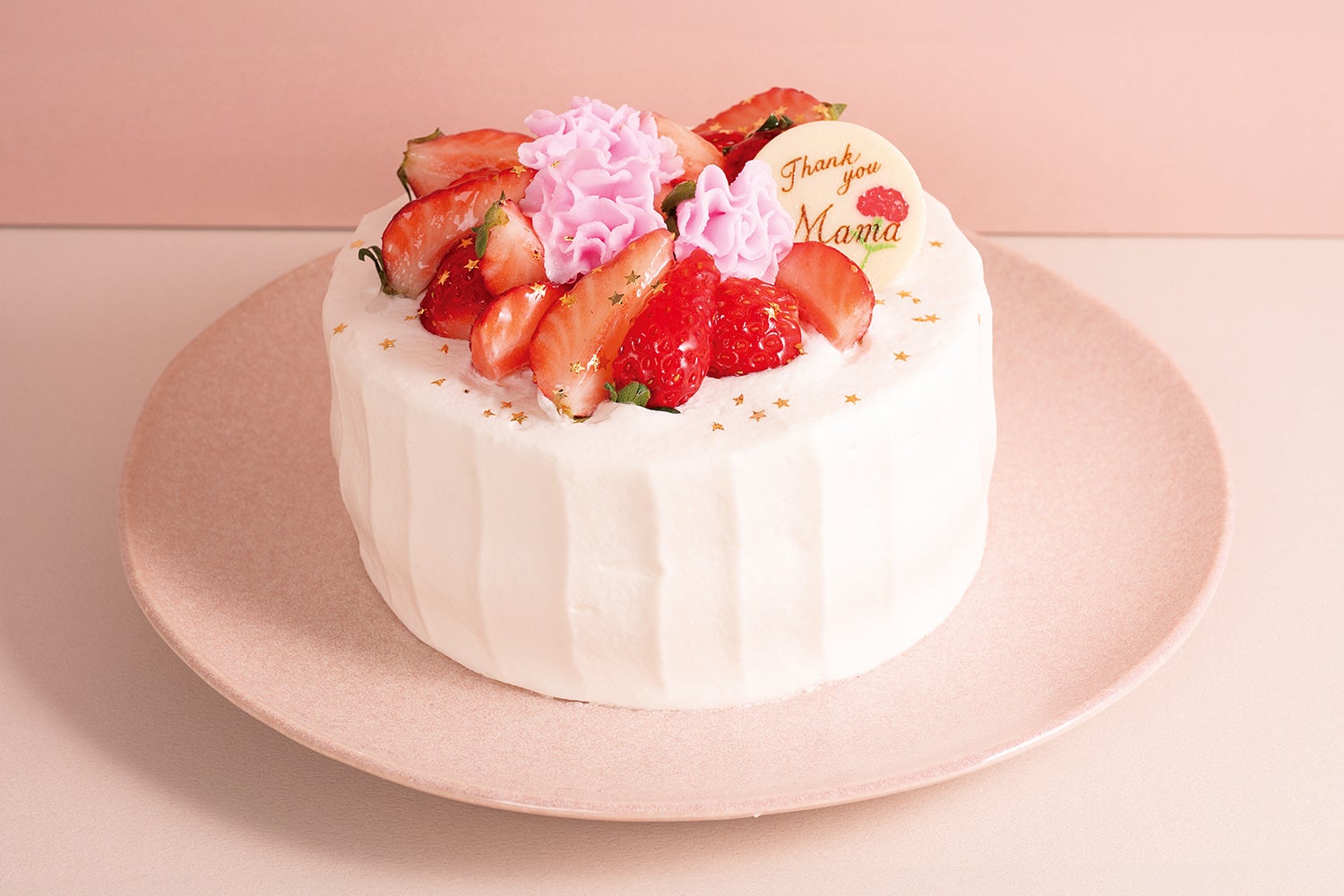 お母さんが思わず笑顔になってしまうような、ストロベリーショートケーキを華やかに彩った母の日限定デザイン。