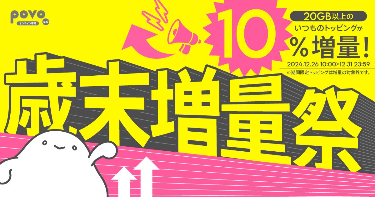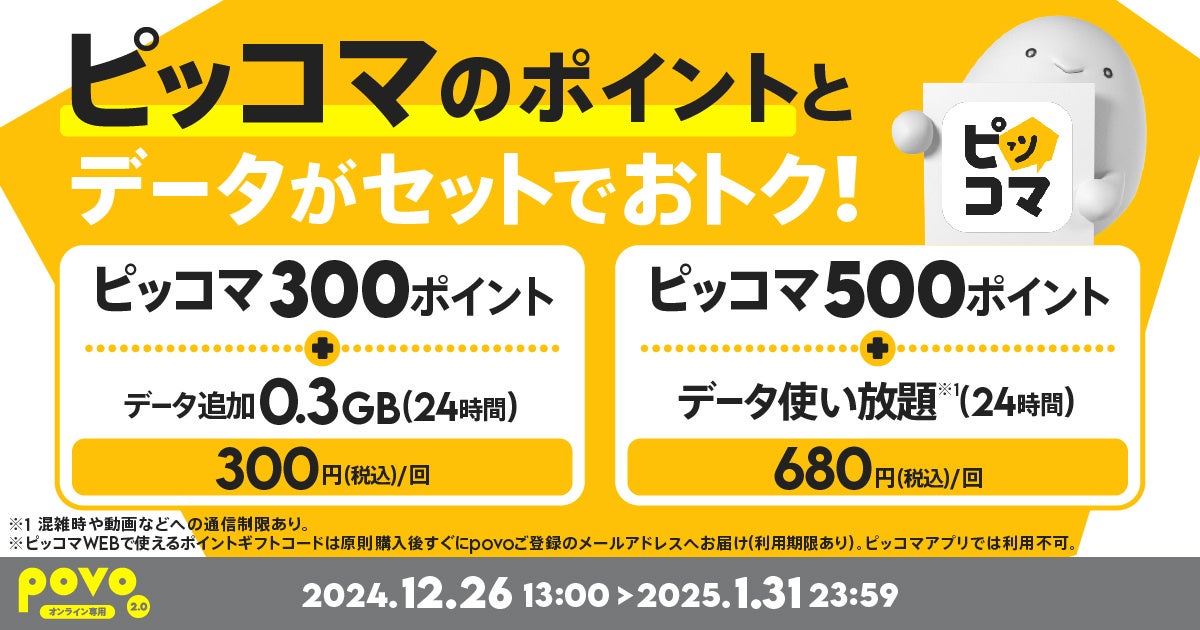 povo、「2024年 歳末祭」でデータ容量10%増量や、ピッコマとのコラボトッピングなどを提供