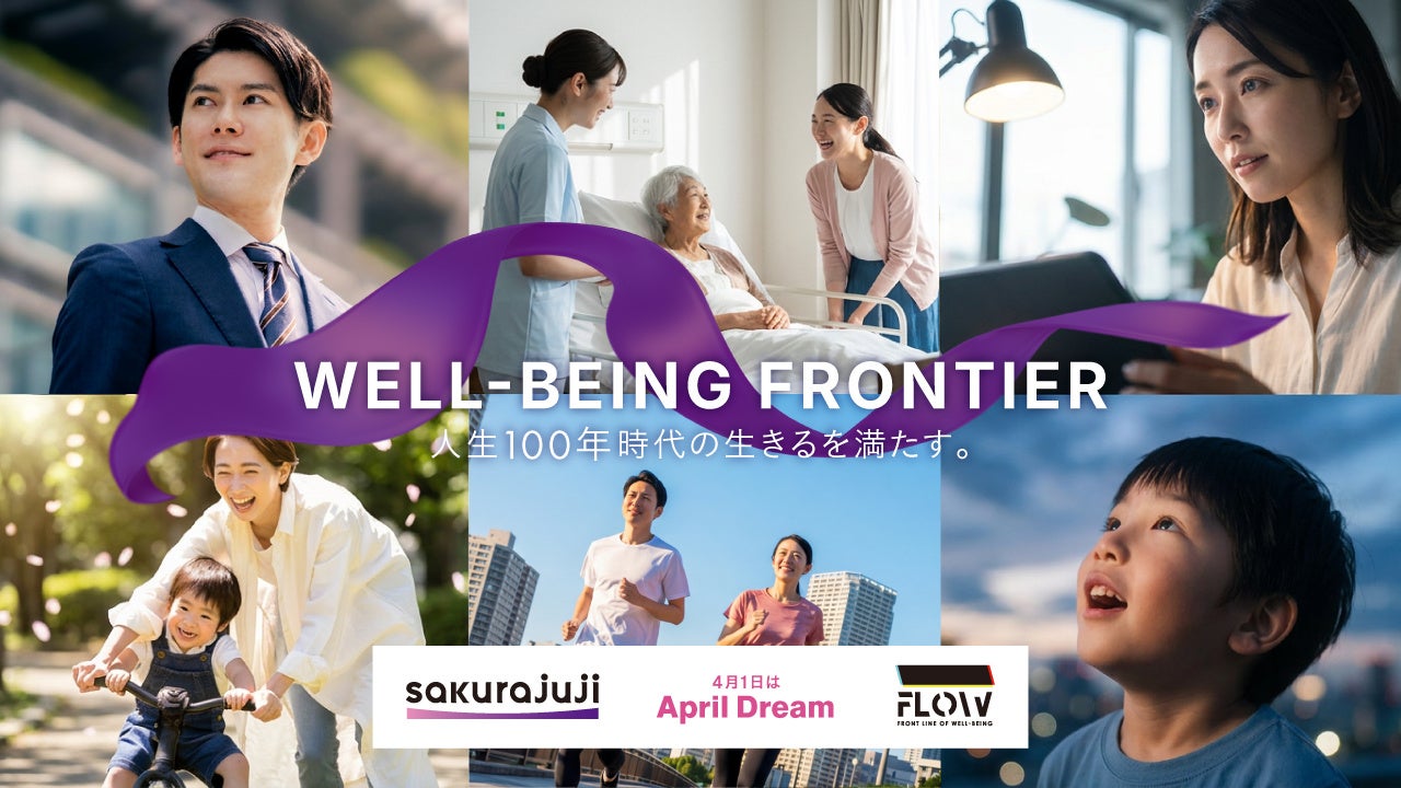 「人生100年時代の生きるを満たす。」をミッションに、医療・介護・予防医療を軸に展開する桜十字グループ(以下、桜十字)。そのビジョンを社内外へつなぐ横断型チーム「FLOW(Front Line Of Well-being)」は、2026年4月1日のAprilDreamに、ひとつの夢を掲げます。それは、桜十字で働く全スタッフのウェルビーイング度を100%にし、その溢れ出した幸福を世界中に波及させ、医療という枠組みを超えた「しあわせの地平」をどこまでも広げていく、「世界ウェルビーイング化計画」です。