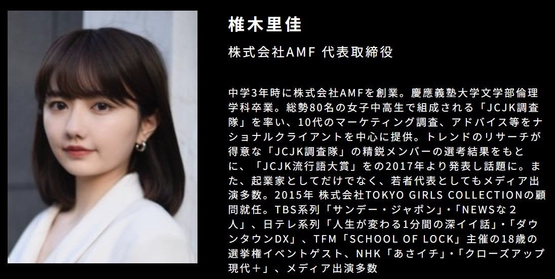 若者のトレンドを読み解く力に長け、Z世代視点での起業家の魅力や価値を評価。
