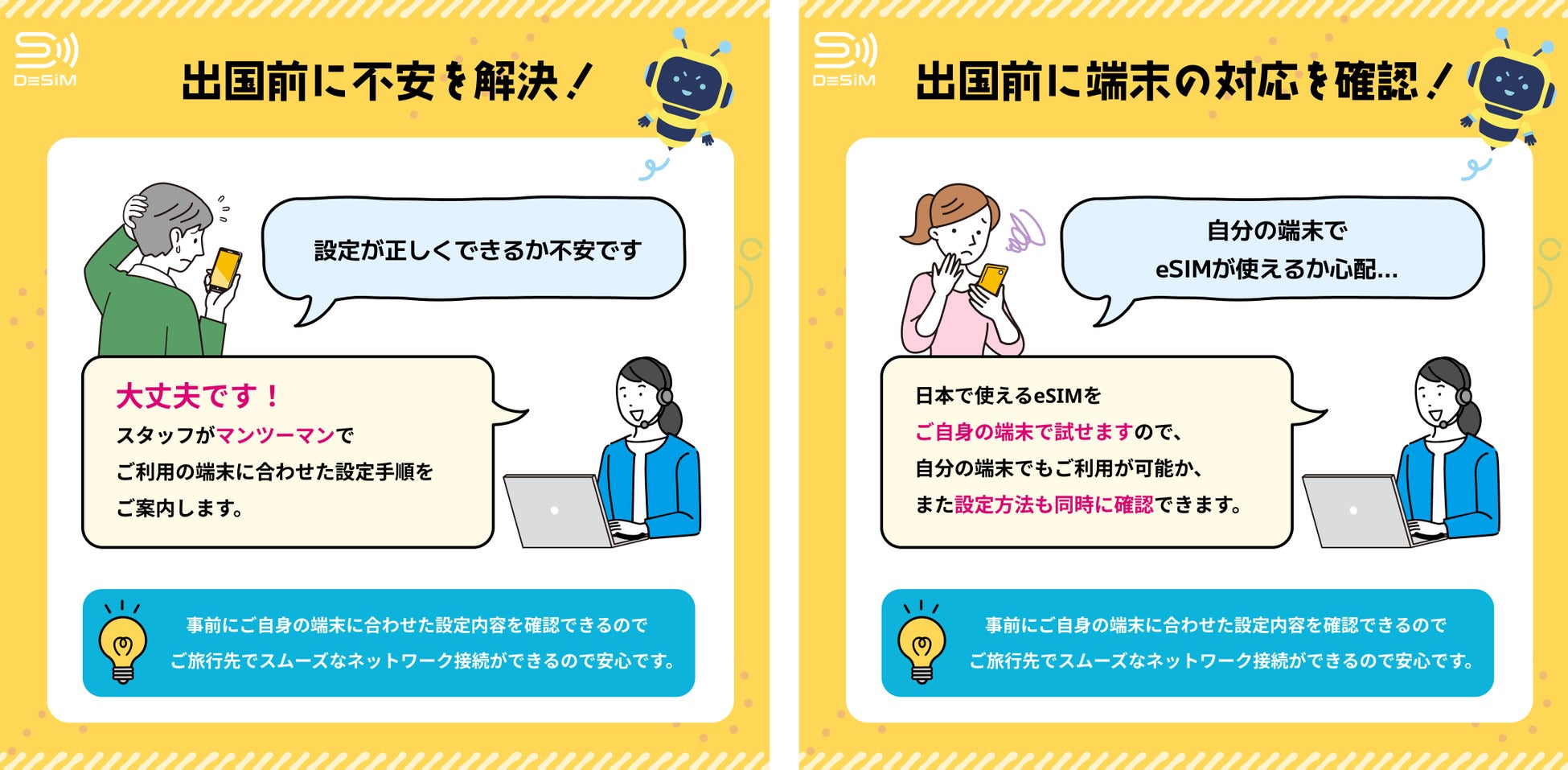 ”自分の端末で利用可能か?””設定は簡単にできるか?”など初めてのeSIMに対するご不安を解消できるサービスです。