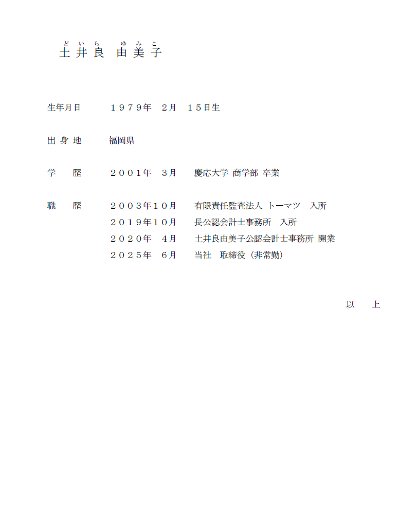 5.新任取締役 経歴書
