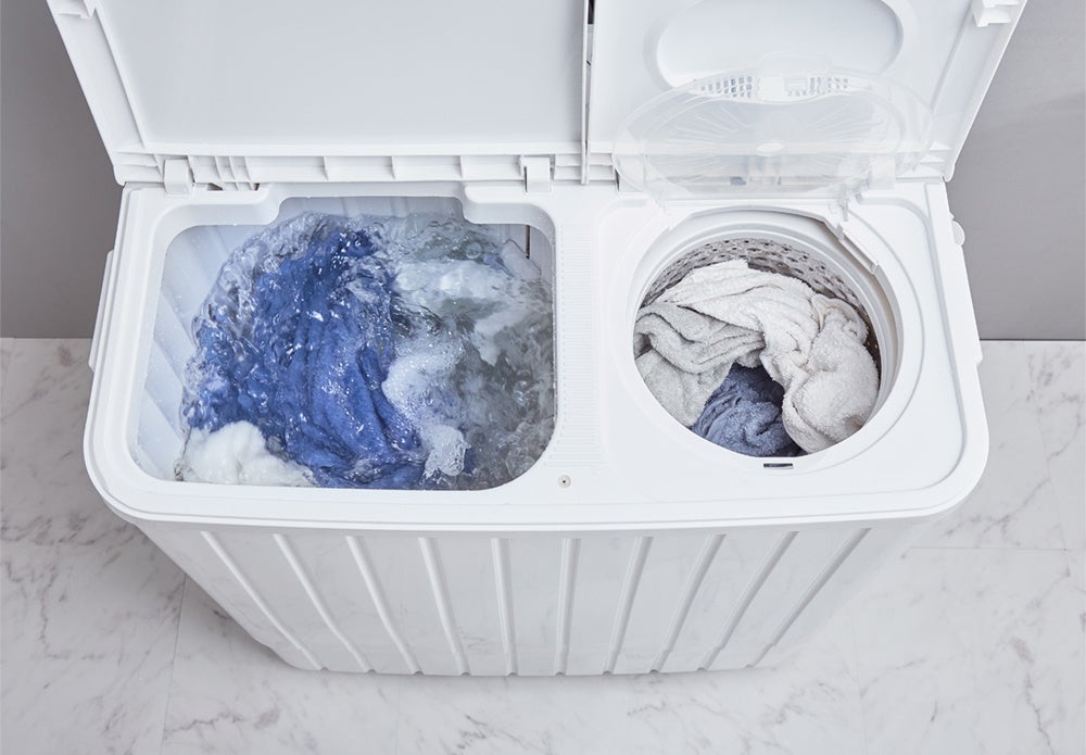 1. 洗いと脱水を同時に。効率的な大容量二槽式