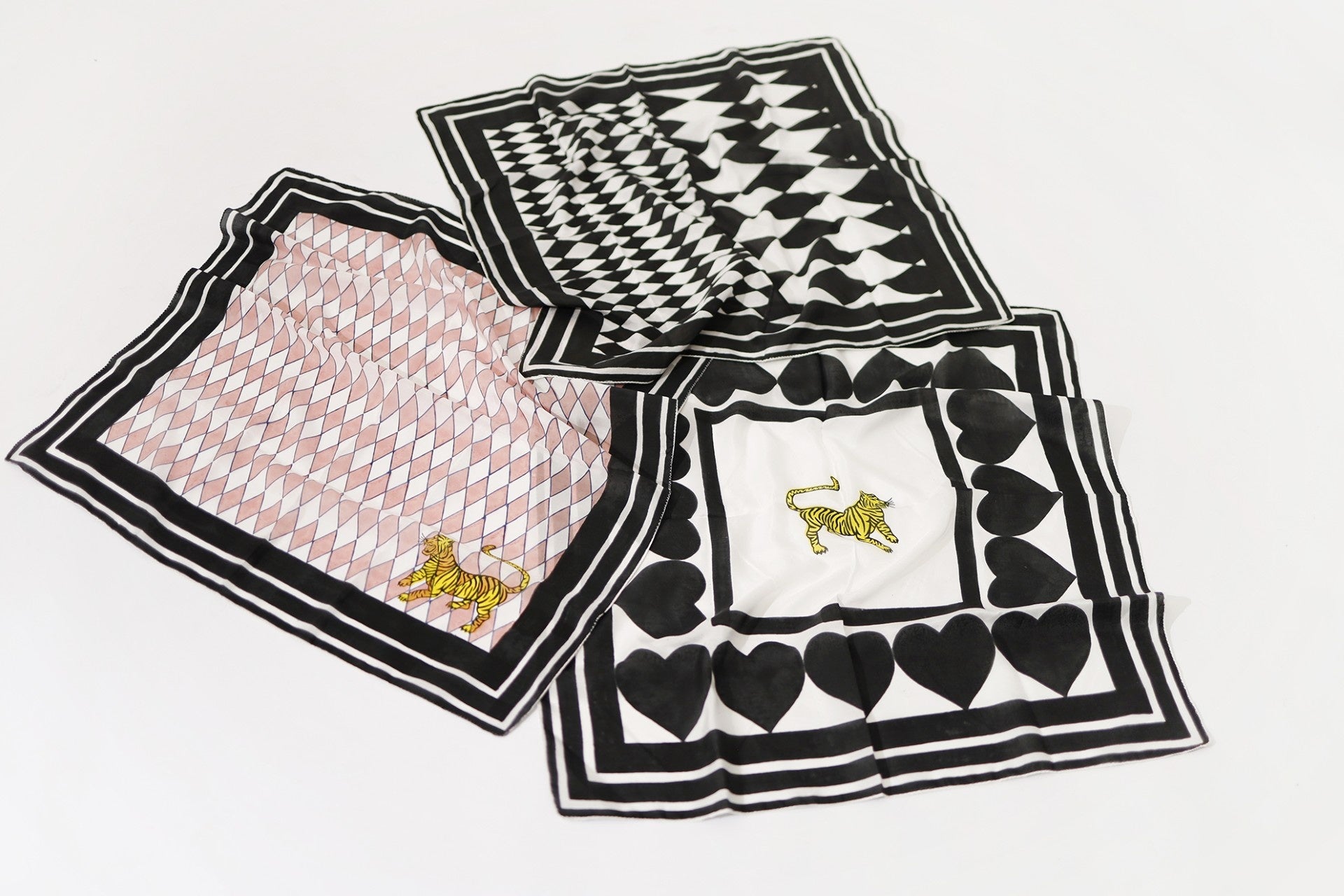 ブランド初となる、シルク100%のスカーフ。職人の手紡ぎ、手作業によるスカーフは、肌寒くなった日のスタイリングに合わせたい。バッグなどのアクセントにも◎インドの国獣でもある虎をレトロにあしらい、SZ Blockprintsのエッセンスを詰め込みました。