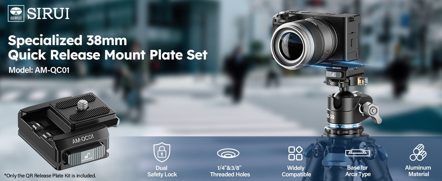 【新製品 AM-QC01】SIRUI 38mm クイックリリースプレート&クランプキット 高精度カメラマウントアダプター 三脚・一脚対応 1/4"-20 および 3/8"-16 ネジ穴付き