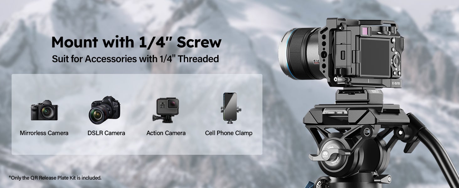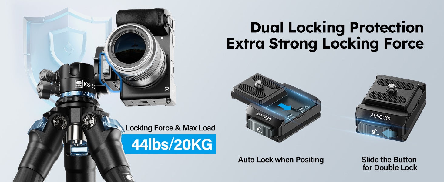 クイックリリースプレートとクランプキットは、高品質なアルミニウム合金で作られており、耐久性に優れたほぞ穴およびほぞ穴構造を採用しています。CNC精密加工により仕上げられ、最高の品質を誇ります。さらに、最大荷重は20KGまで対応可能で、重い機材にも安心して使用いただけます。