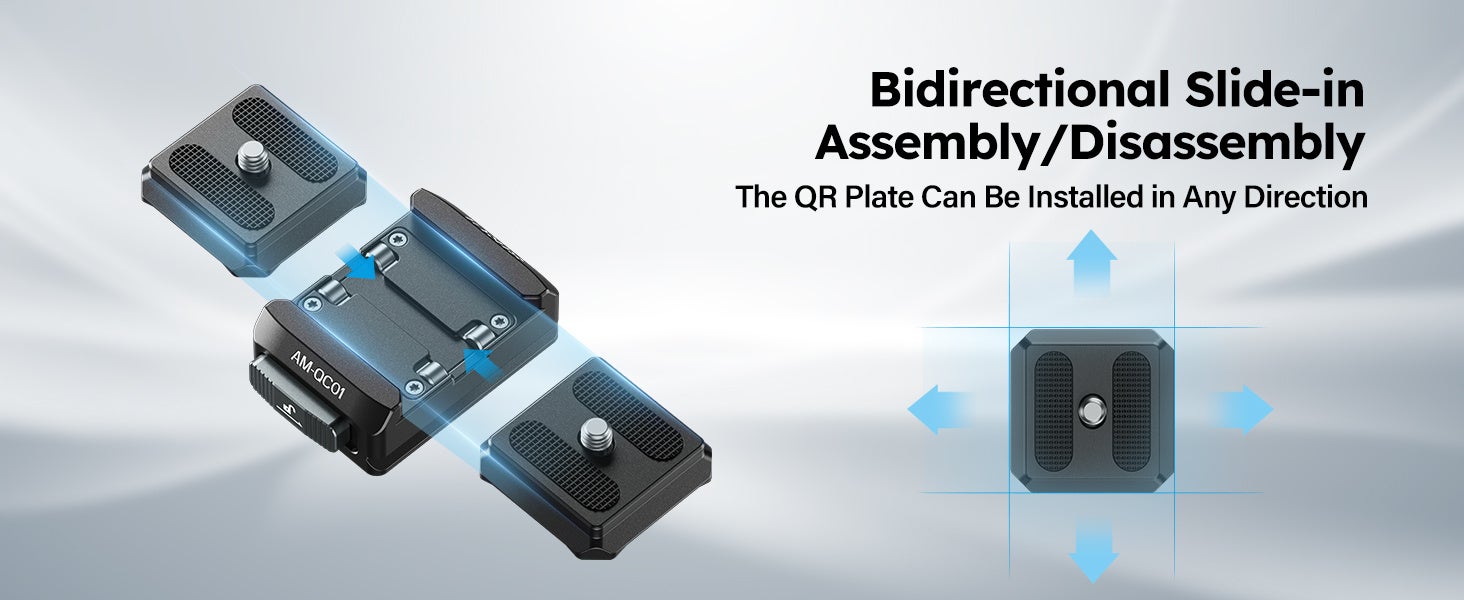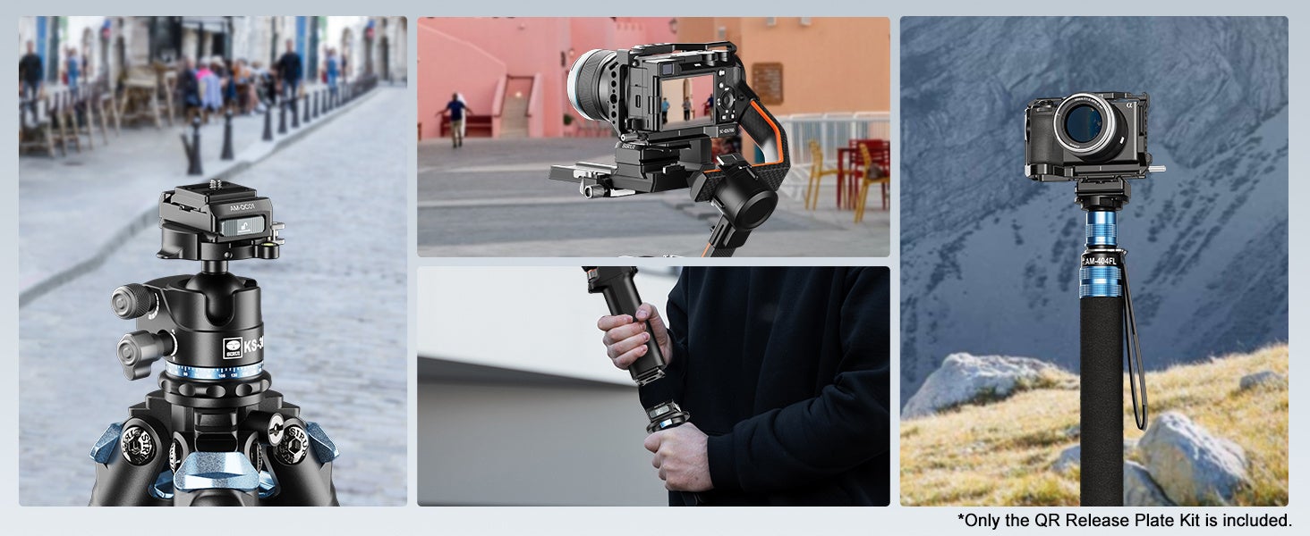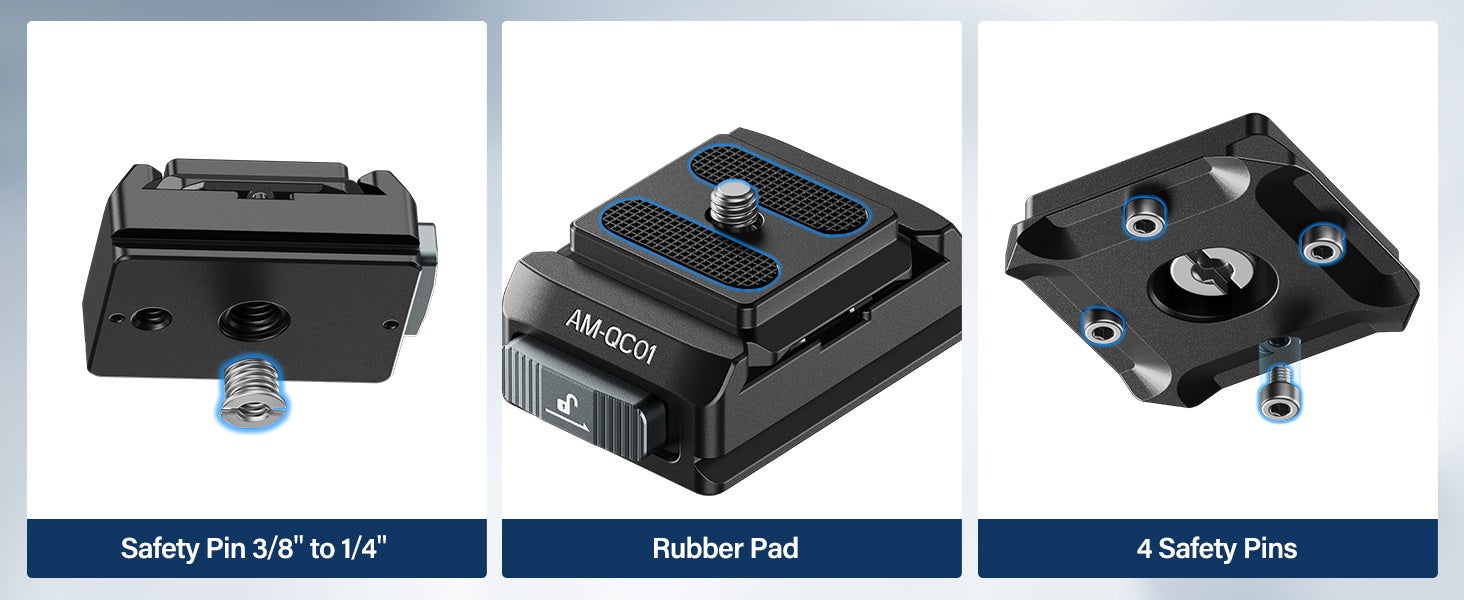 AM-QC01ベースは、このセットに含まれるトッププレートとのみ互換性があります。他の仕様のクイックリリースプレートとは互換性がないため、ご使用の際はご注意ください。