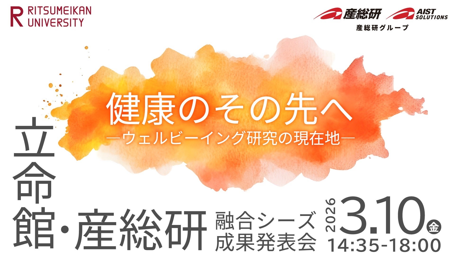 立命館・産総研 融合シーズ成果発表会 ~健康のその先へ -ウェルビーイング研究の現在地- ~【3月10日/グラングリーン大阪・ハイブリッド開催】