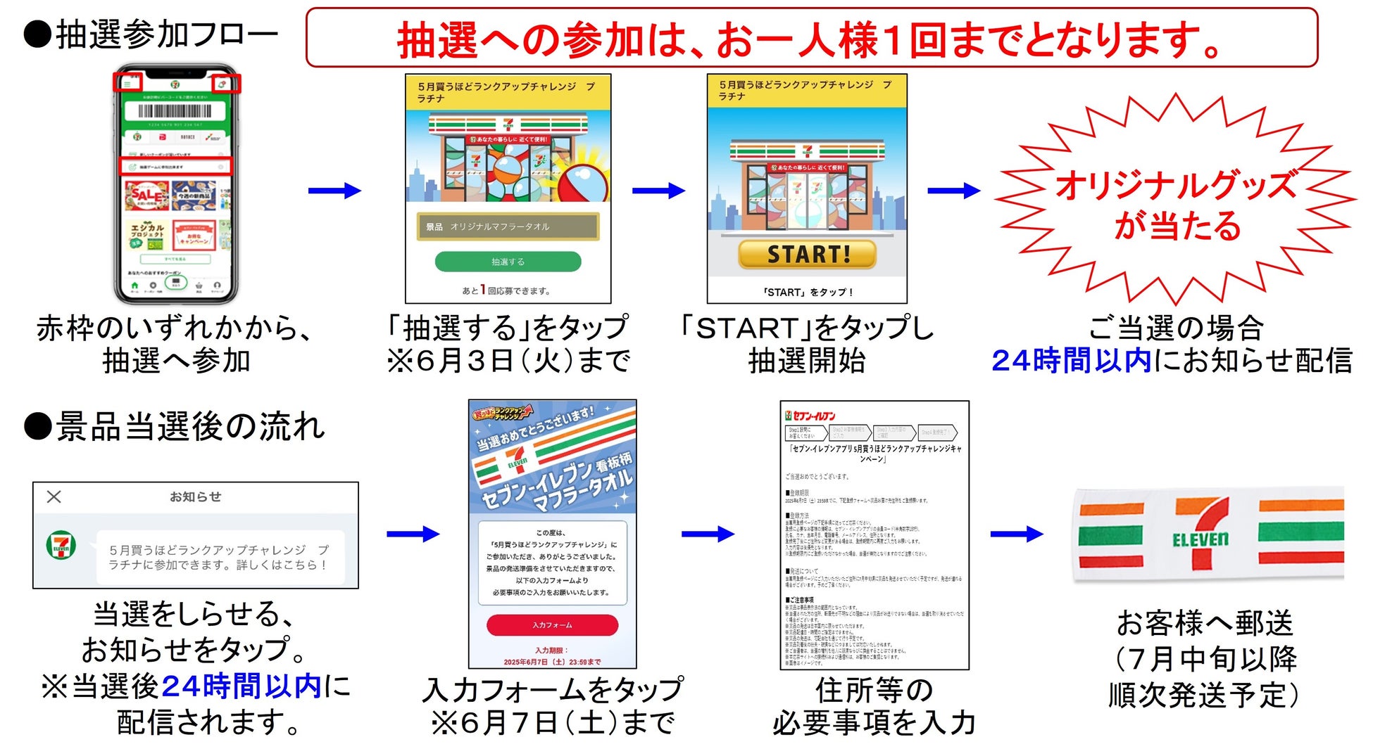 累計会員数2,600万人突破!!(※1)セブン‐イレブンアプリのお得なキャンペーン開始 5月1日(木)~「買うほどランクアップチャレンジ」で「セブン‐イレブン看板柄オリジナルマフラータオル」が当たる!