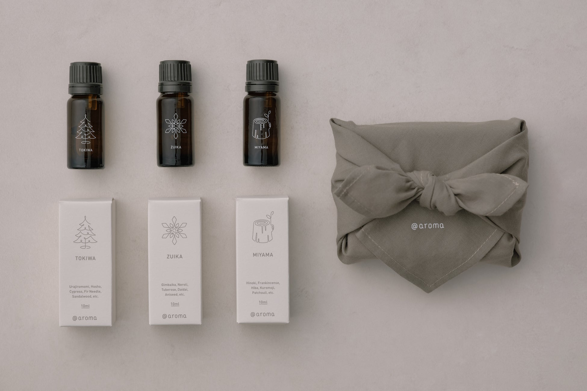*エッセンシャルオイルブレンドは、TOKIWA / ZUIKA / MIYAMAからいずれか1種がセットになります。