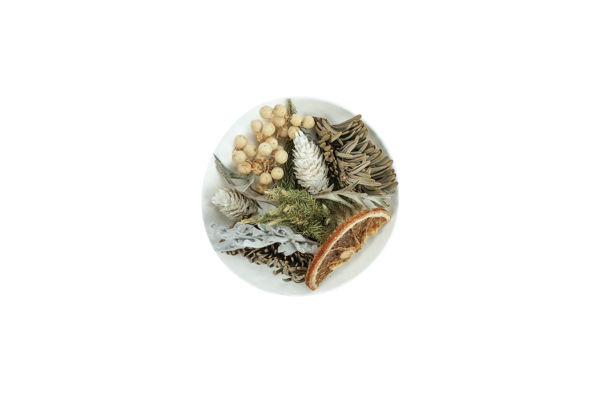 ホリデーシーズンを彩るドライボタニカルのディフューザーと限定オイルのセットです。ドライボタニカルは、クリスマスの飾りつけにも使われるモミやスギを中心に、木の実や果実などを組み合わせました。セットの香りによって、テーマカラーが異なるドライボタニカルが封入されます。