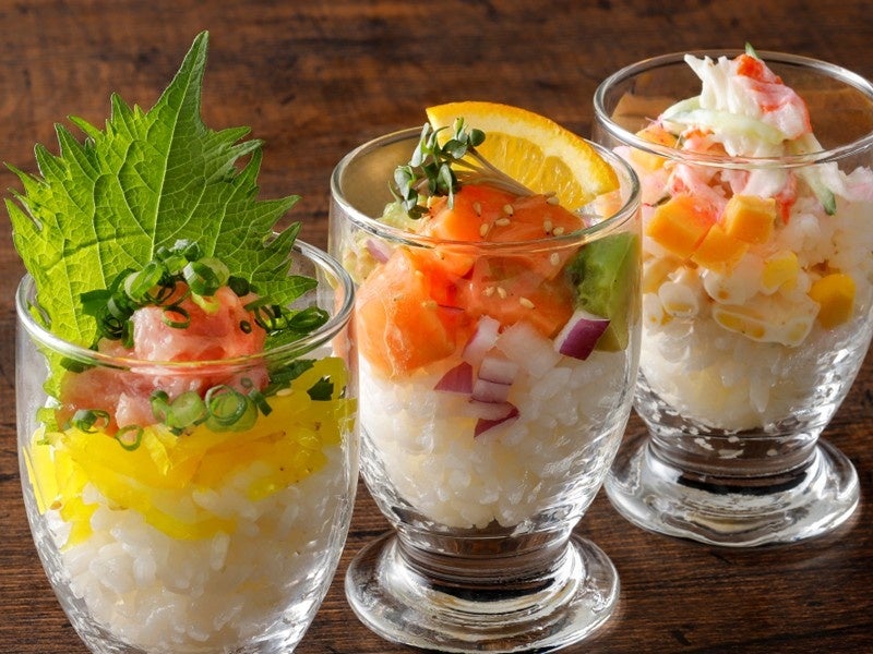 見た目もかわいい、夏にぴったりのトロピカルな味わいの「サーモンポキパフェ」他、すたみな太郎の新メニューが6/7(土)から先行して登場いたします。