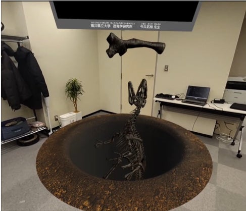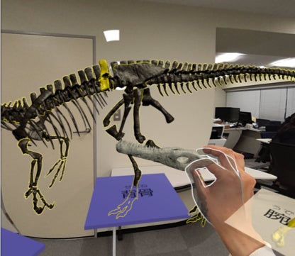 本技術は、東京駅で開催される特設イベントにて体験型コンテンツとして公開されます。VRゴーグルを装着すると、フクイラプトルの全身骨格が大迫力で目の前に登場し、恐竜研究をモチーフにした化石の復元部位当てクイズを体験できます。また、福井県立大学恐竜学研究所の監修により、研究者による化石研究や発掘調査のエッセンスをVRテクノロジーで垣間見ることができます。驚きに満ちた複合現実とハンドトラッキング技術を教育分野等で活用する新しい可能性を提案します。