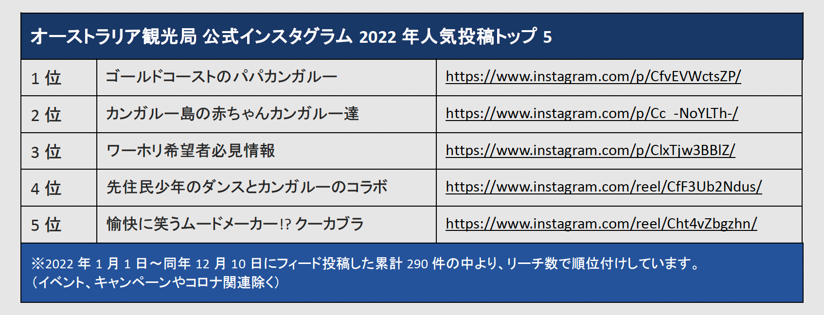 - オーストラリア観光局 公式インスタグラム2022年人気投稿トップ5