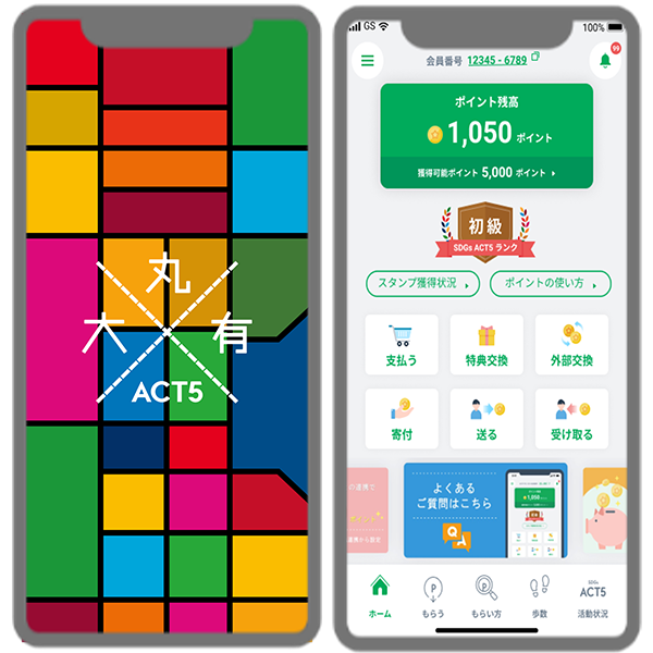大丸有エリア内で行われる個人のSDGsアクションに「ACT5メンバーポイント」を付与するアプリです。