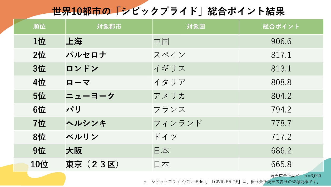 【グローバル10都市 「シビックプライド」評価把握 定量調査】