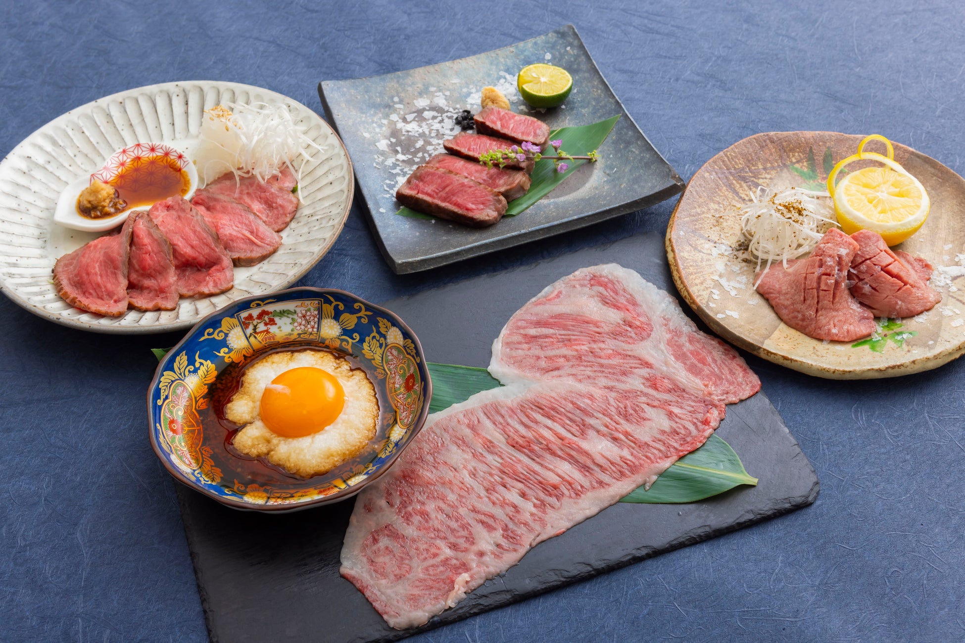 和牛のステーキや、サッと炙った和牛のしゃぶしゃぶ、ローストしたもも肉を薄切りにした