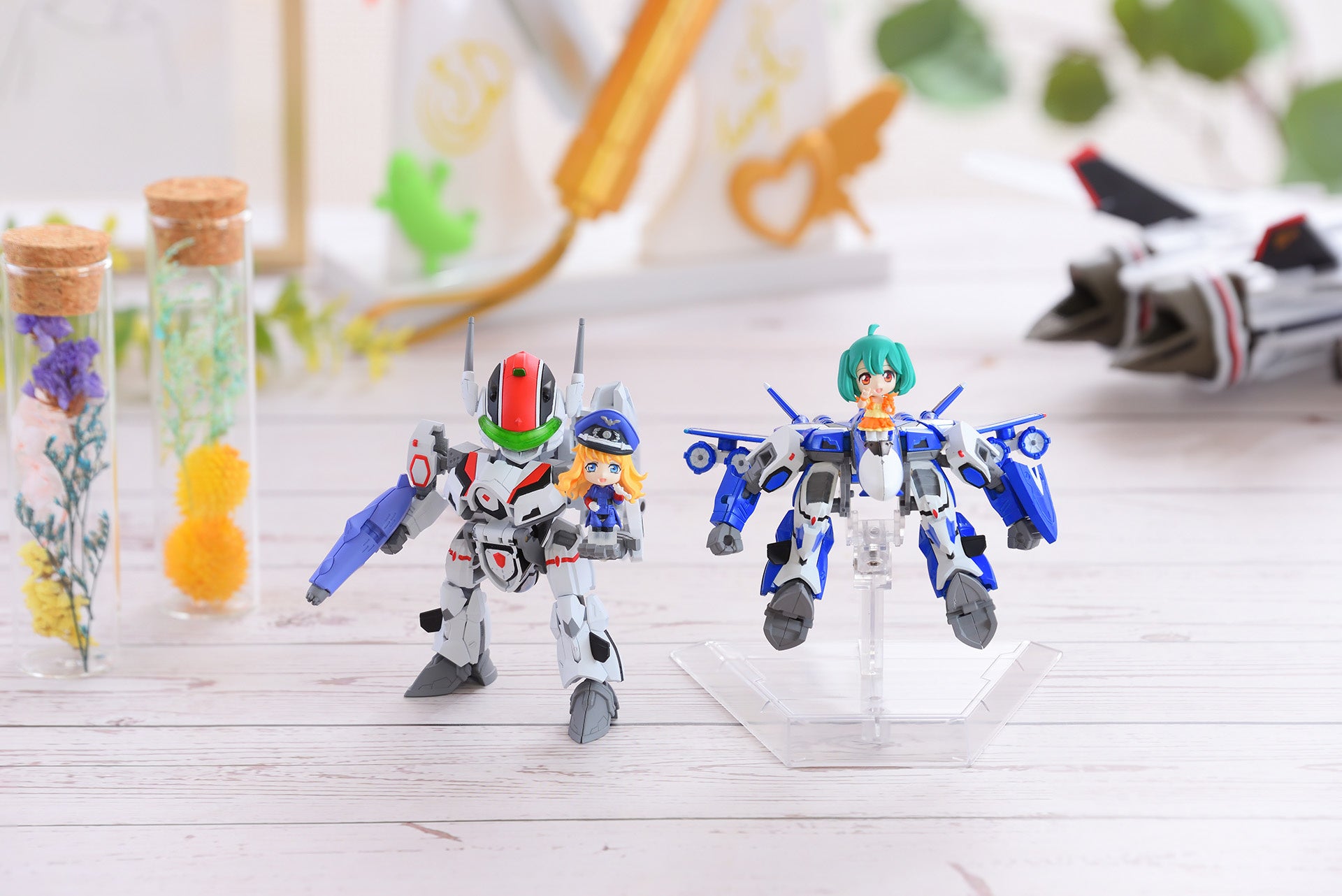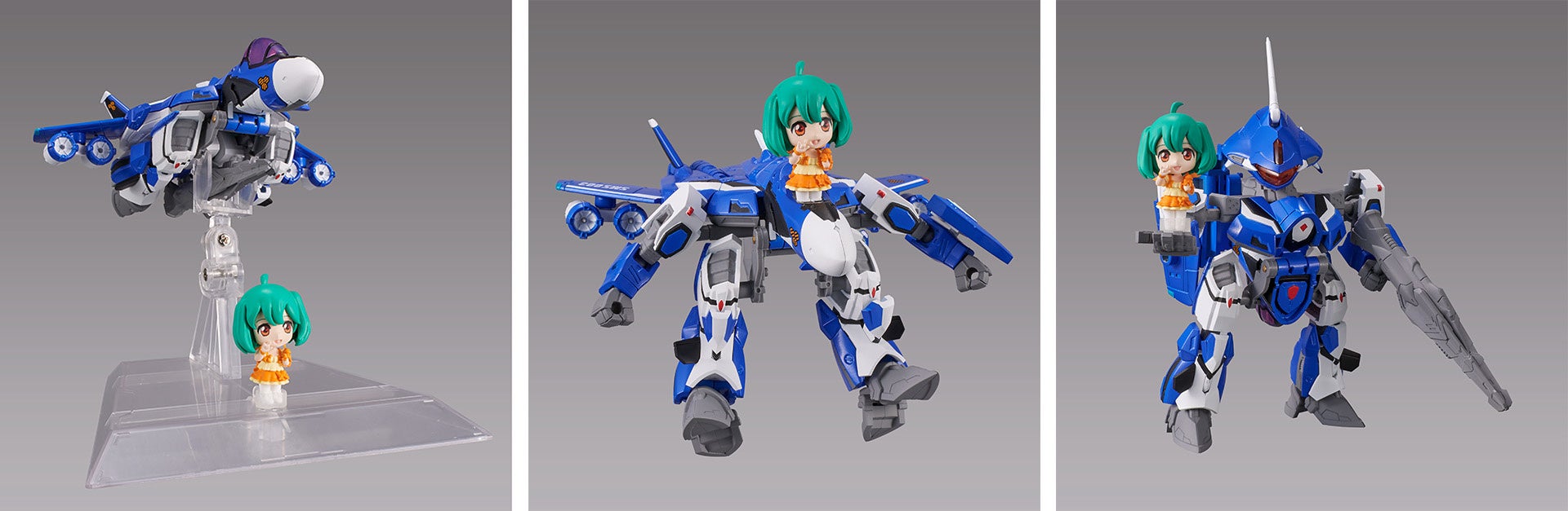 デフォルメデザインされたメカとキャラがセットになった新機軸のコレクションフィギュア新ブランドが誕生!『マクロスF』より「VF-25Gメサイアバルキリー(ミシェル機)」と「ランカ」のセットが発売!