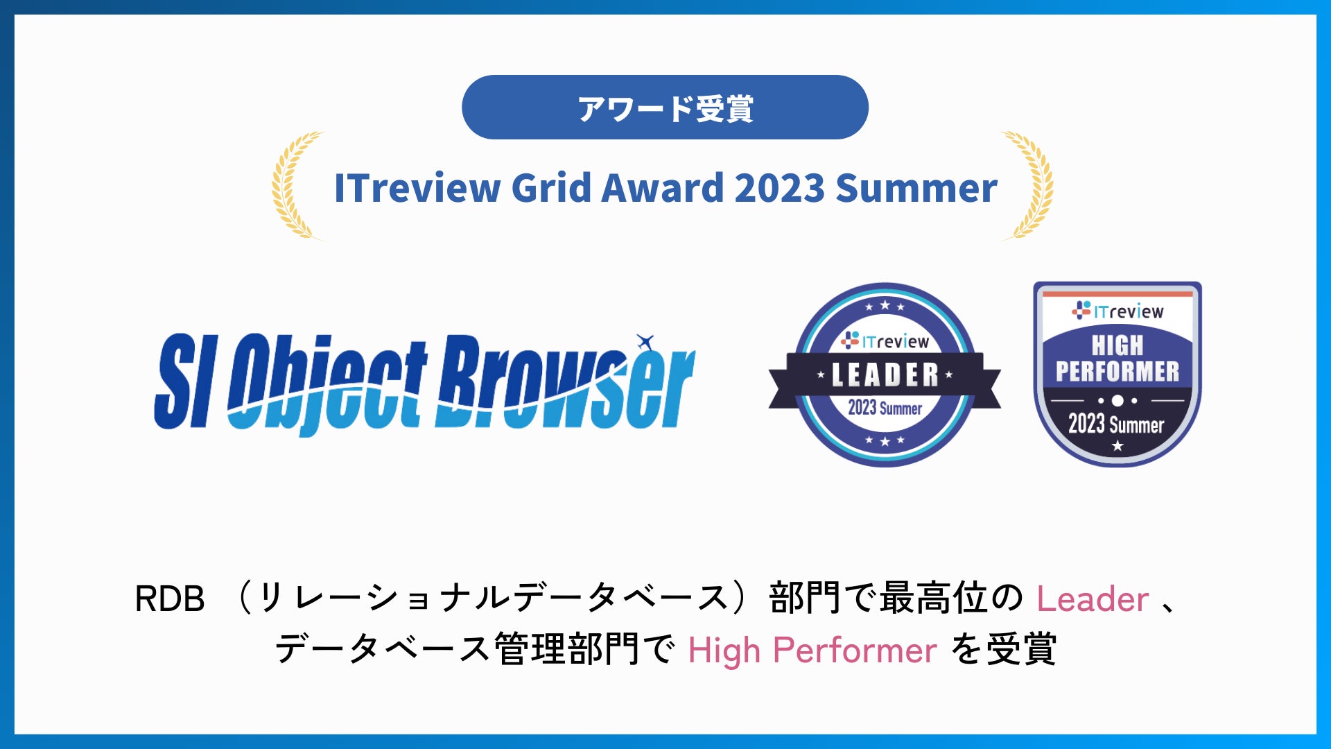 「SI Object Browser」が「ITreview Grid Award 2023 Summer」の2部門において最高位のLeaderおよびHigh Performerを受賞