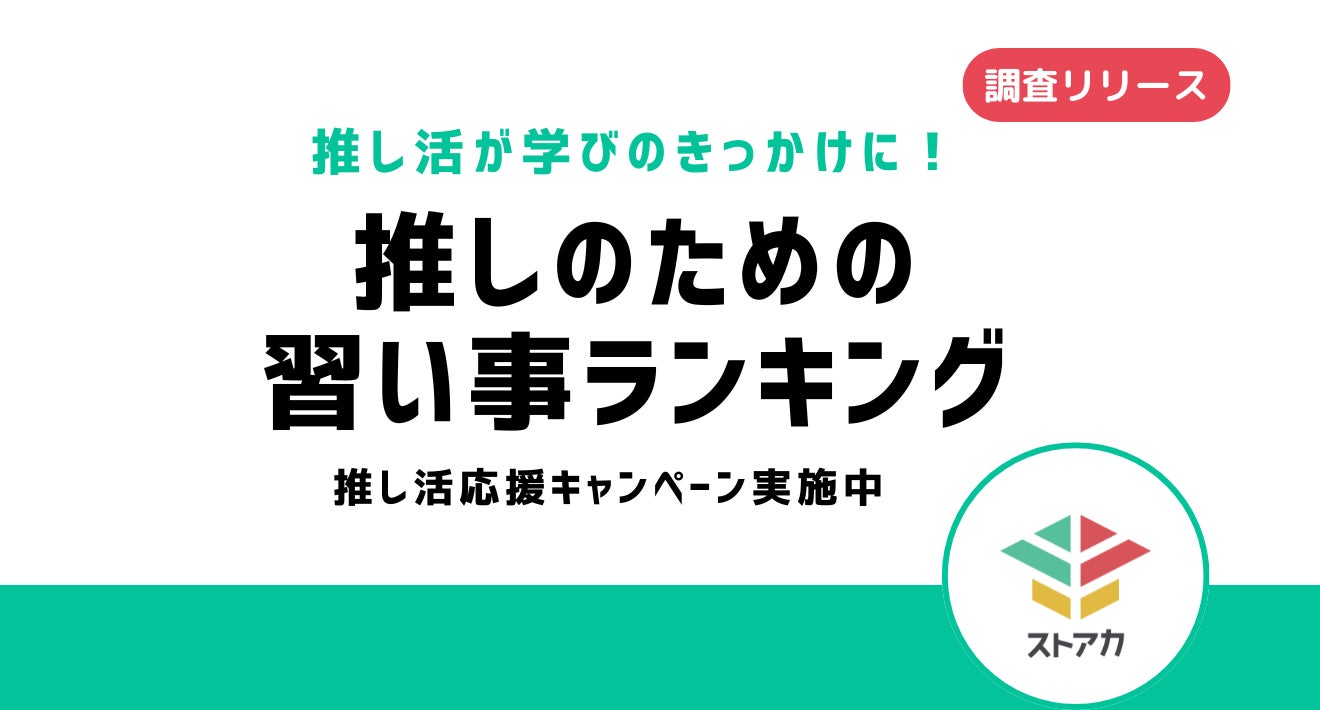 教えたいと学びたいをつなぐまなびのマーケット「ストアカ」を運営するストリートアカデミー株式会社(本社:東京都渋谷区、代表取締役 社長:遠田 望)は、「推し活をきっかけに習い事を始めた」受講者を対象としたアンケート調査を実施しました。