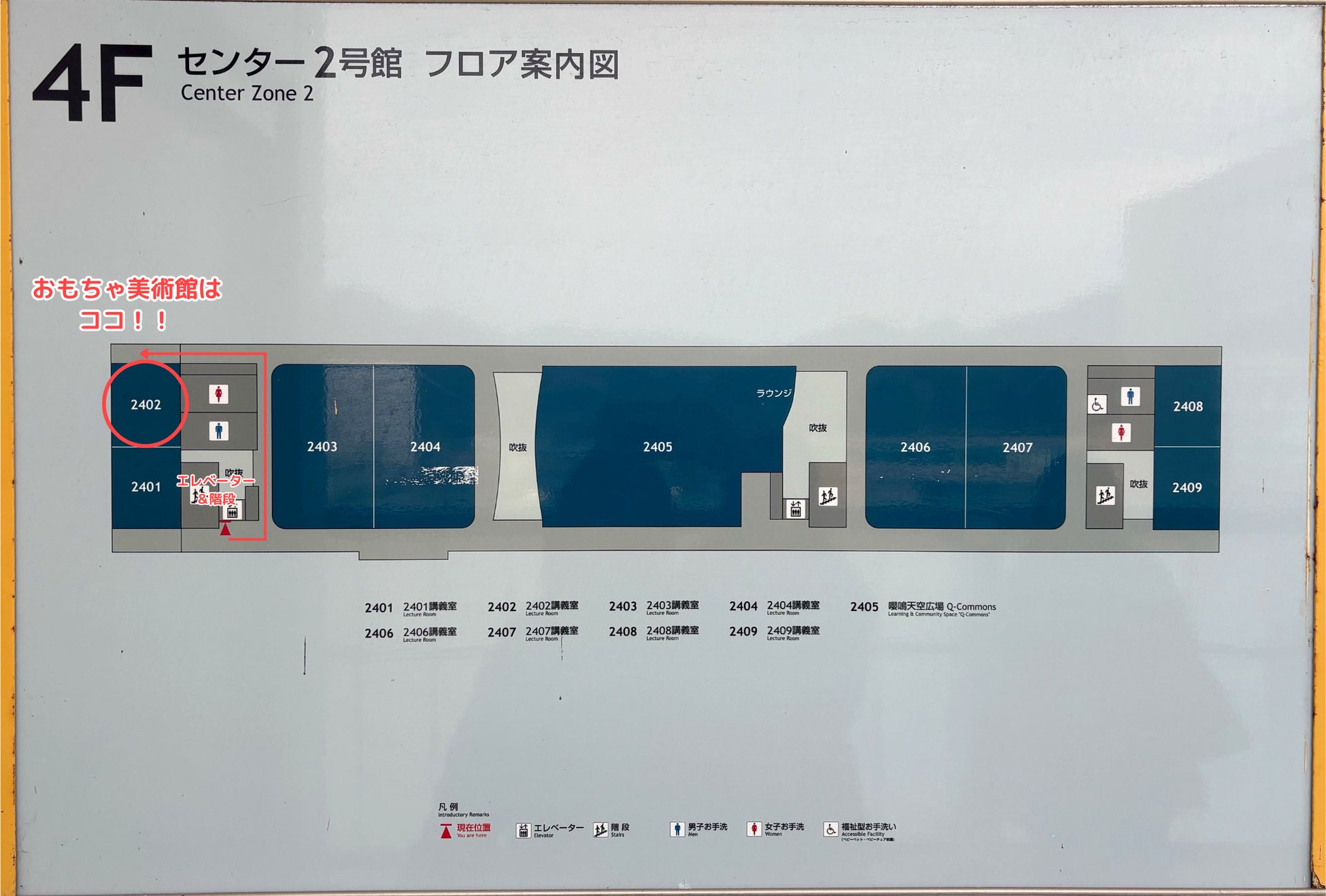 福岡おもちゃ美術館のブースはセンターゾーン2号館4階の2402号室で行います。
