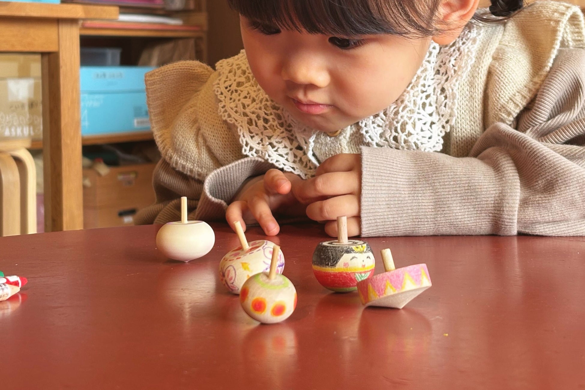 5種類の木のコマから1つ選んで色を塗ろう。回したときの色の変化も楽しんでみてね♬