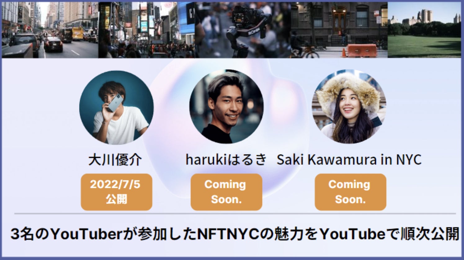 NFT.NYCでの最前線が、日本人としてグローバルに活躍する3名のクリエイターのみなさんに、どのように映り、どのような変化をもたらすのか、今後も目が離せません。そして、これらのコンテンツ発信をきっかけに、国内のWeb3.0への関心がさらに高まり、新しい挑戦をする次世代の起業家たちのきっかけになることにも大きな期待を寄せています。