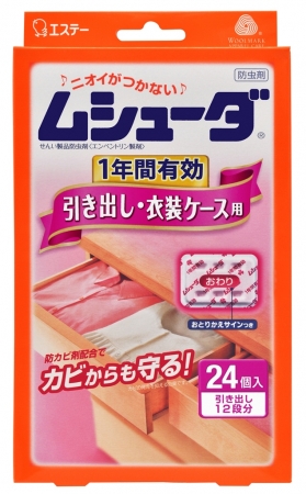 「ムシューダ」は、1988年の発売以降「ニオイがつかないムシューダ♪」のキャッチフレーズで親しまれている、大切な衣類を虫食いから守る安心の防虫剤ブランドです。“引き出し・衣装ケース用”“クローゼット用”“洋服ダンス用”やカバータイプの「ムシューダ防虫カバー」、「ムシューダ人形用」など幅広いアイテムをラインナップしています。