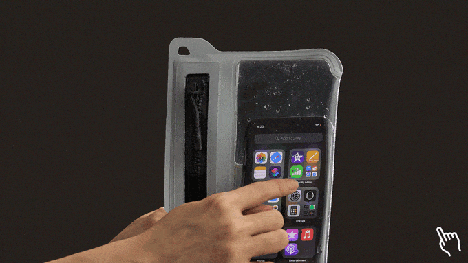 スマートフォンを取り出さずに、透明なポーチを通して直接、スマートフォンの使用や写真撮影ができます。雨の街でも、水辺の探検でも、どこでもスマートフォンを守ります。