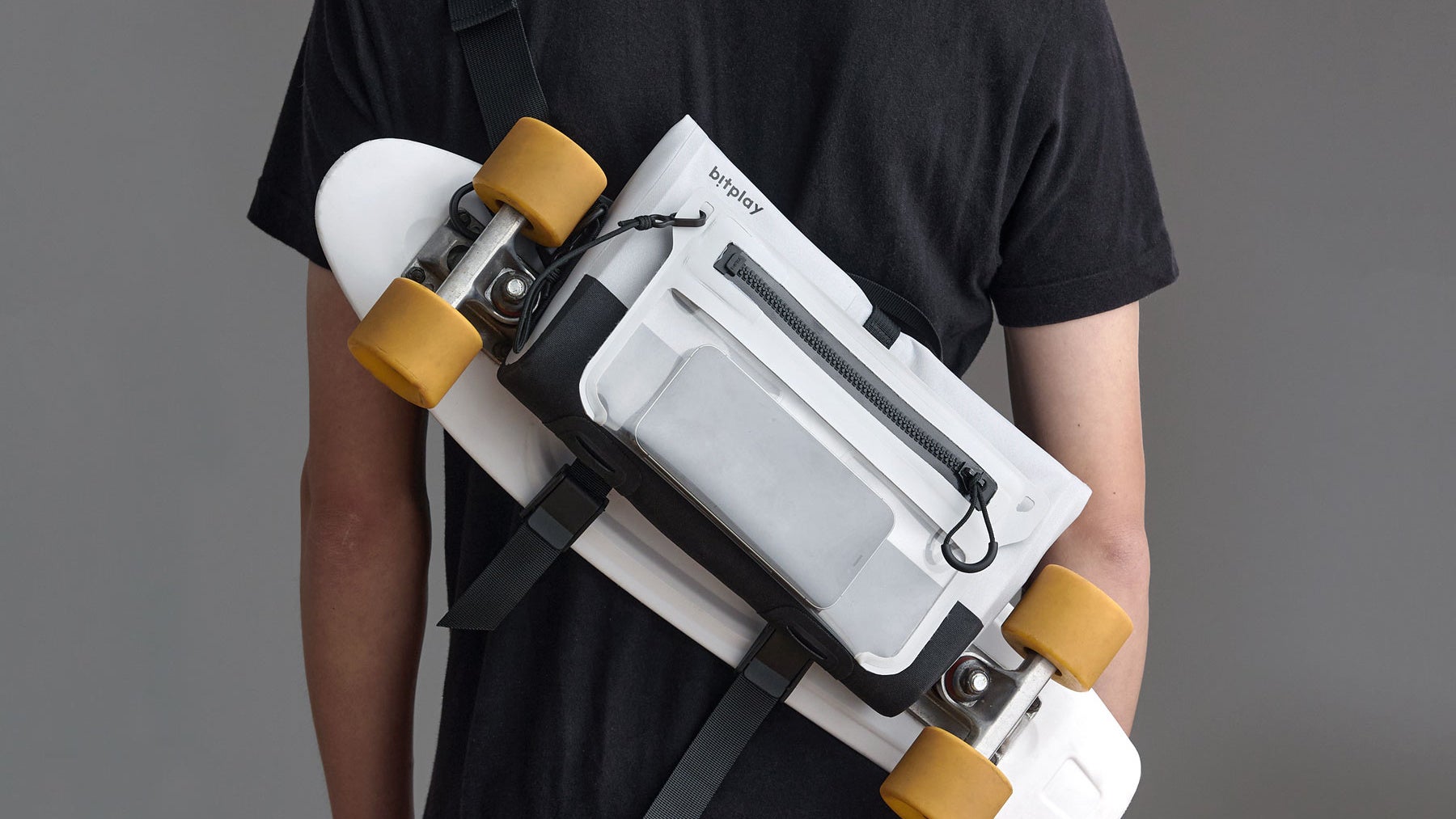 メインスリングの背面にキャリアーを取り付けるとスケートボード(22インチまで)を収納でき、バッグの底面に取り付けるとウォーターボトルを収納することができます。必要に応じて、ストラップの長さを調節してください。
