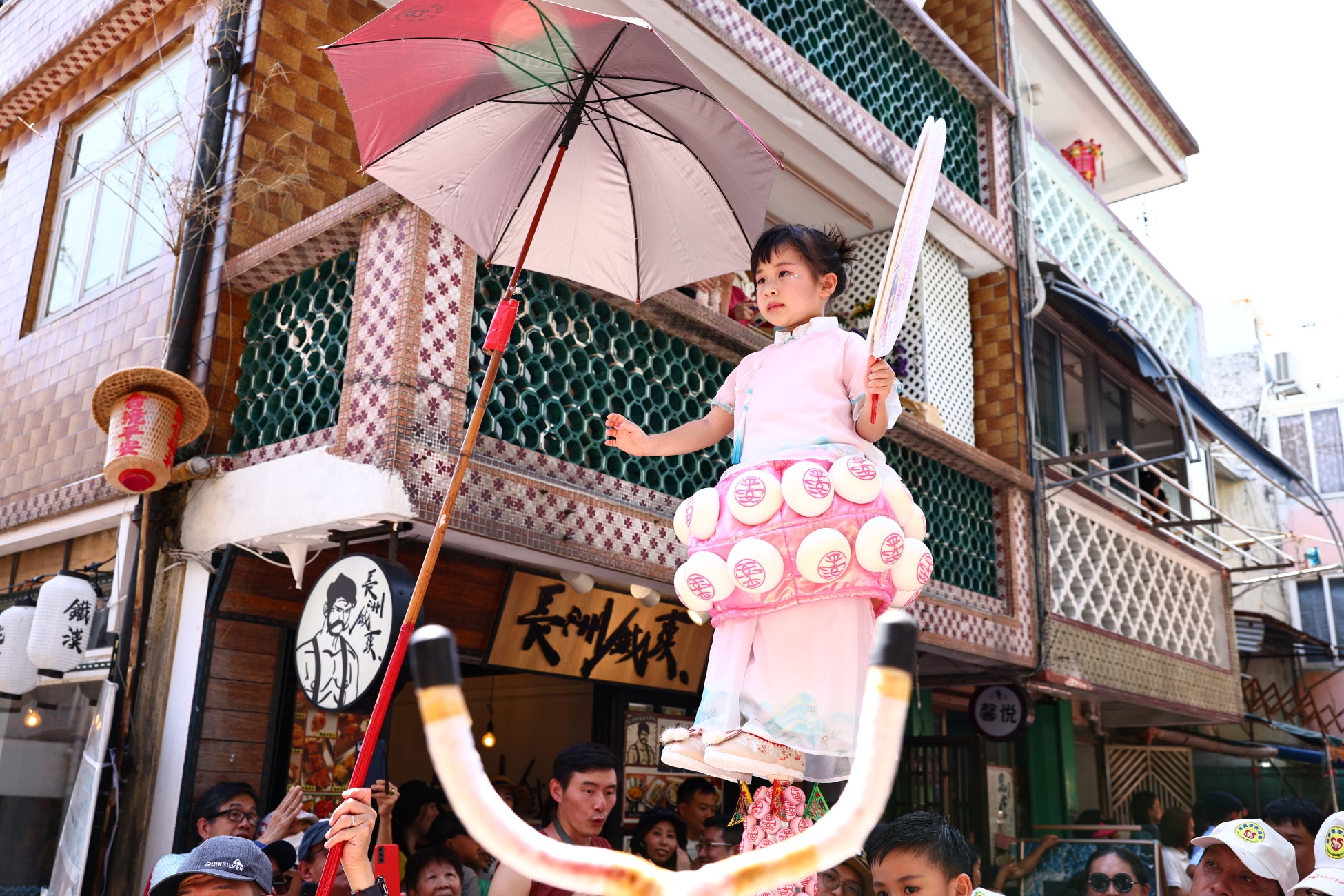 注目イベントのひとつである飄色(Piu Sik)パレードには、毎年何千人もの見物客が集まります。 パレードでは、子供たちが神々や公人、ポップカルチャーの有名人などに扮して、群衆の上を浮かんでいるかのように行進します。