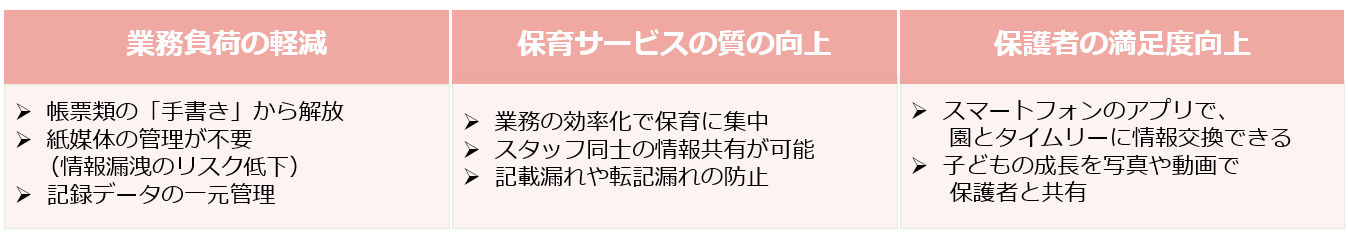 なおソラストでは、グループ会社運営の保育園に先がけ、2022年4月よりルクミーを導入しており、今では多くのスタッフの業務負荷が軽減し、心と時間にゆとりがもてるようになりました。また、連絡帳機能の活用で、保護者とのコミュニケーションが円滑に進むなど、保育サービスの質が向上しています。