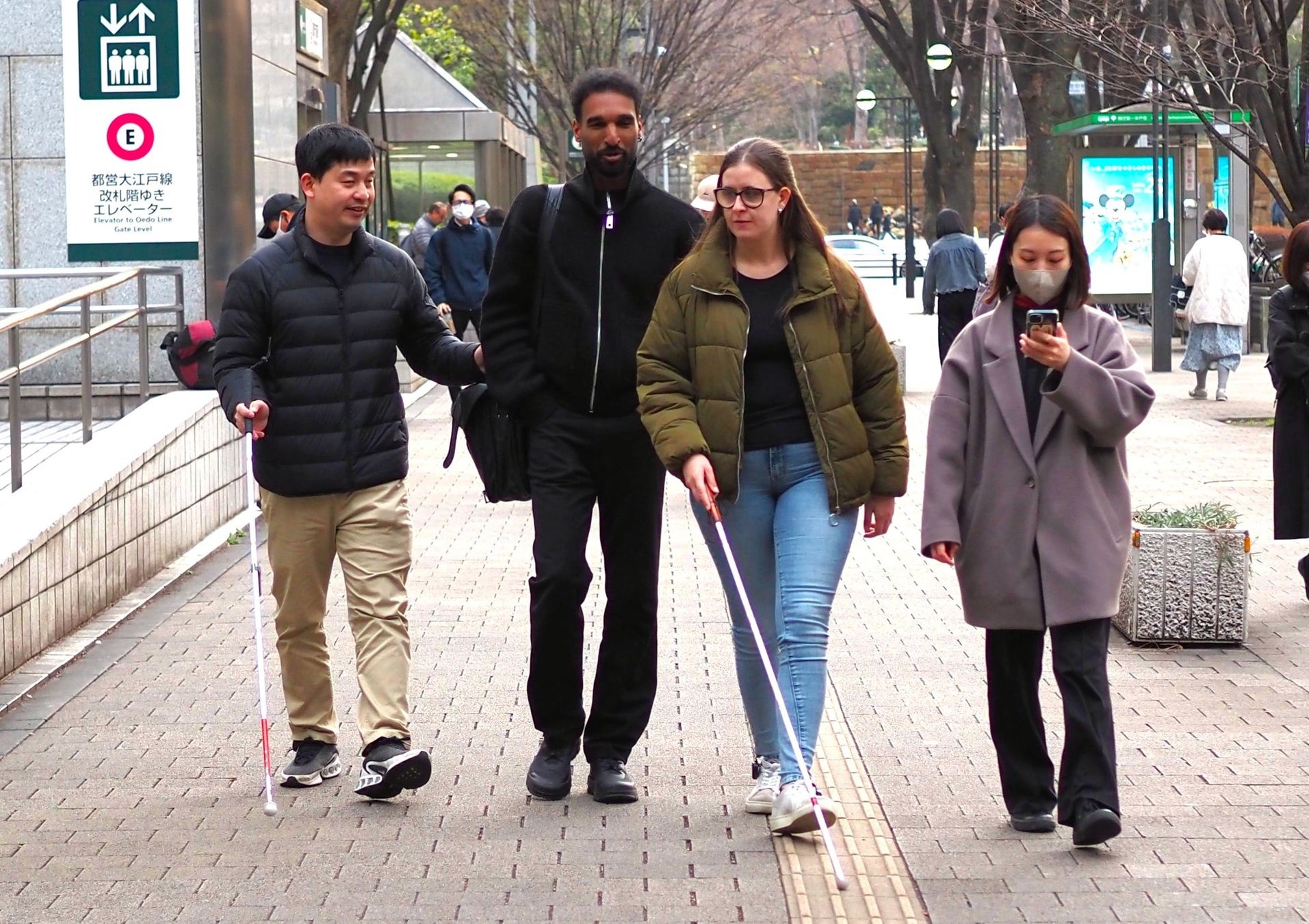 実証実験として株式会社Ashiraseが提供する視覚障がい者向け振動ナビデバイス「あしらせ」を装着して、都内での歩行体験を行いました。また、日本科学未来館を訪問し、AIスーツケースを体験するなどフィールドワークを行いました。