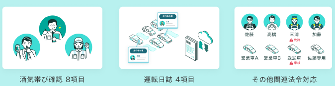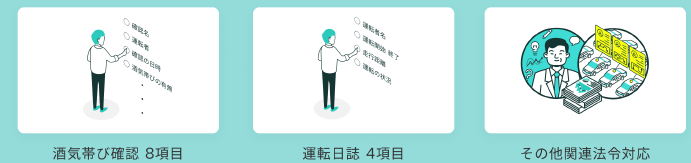 ③法令遵守:運転前後のアルコールチェックだけではなく、道路交通法をはじめとした法令遵守を支援