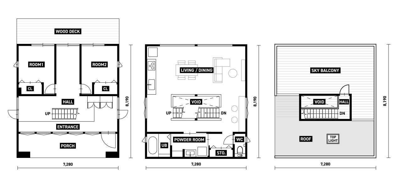 「No.00」の特徴は大きな2Fリビング。吹き抜けになった階段を上がると開放的なスペースが出迎えるまるでシェアハウスのような空間。また、プレーンな住宅デザインもトレンドやライフステージ、そして住まう人の変化に柔軟にアレンジできるよう、ベースとなるデザインは無駄なものを削ぎ落とし、シンプルに仕上げました。それは、「これからの家づくりは想像することからはじまる」、そう提案するDoliveが考えるスタンダードな住宅が「No.00」だからこそ。この家の使い方をユーザー自身が想像し、このキャンバスのようなプレーンな家に自分らしさを加えたら、暮らしはもっと楽しくなるはず。Doliveにはそれを想像させるアイデア&ツールが揃っています。