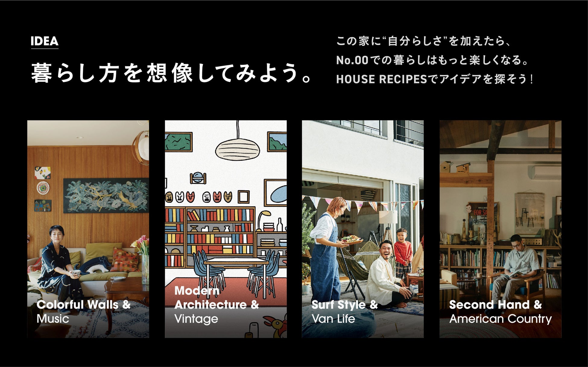 まるで無地の白Tシャツを人それぞれ好きなスタイルで着こなすように、その人の好きなスタイルで暮らしを楽しむことができる新しい発想のプレーンな住宅。No.00で住みたいからはじまる家づくりを体験してみませんか?