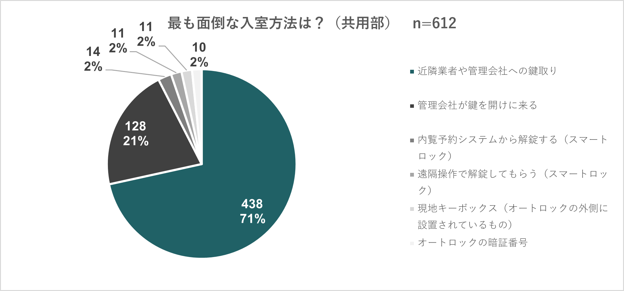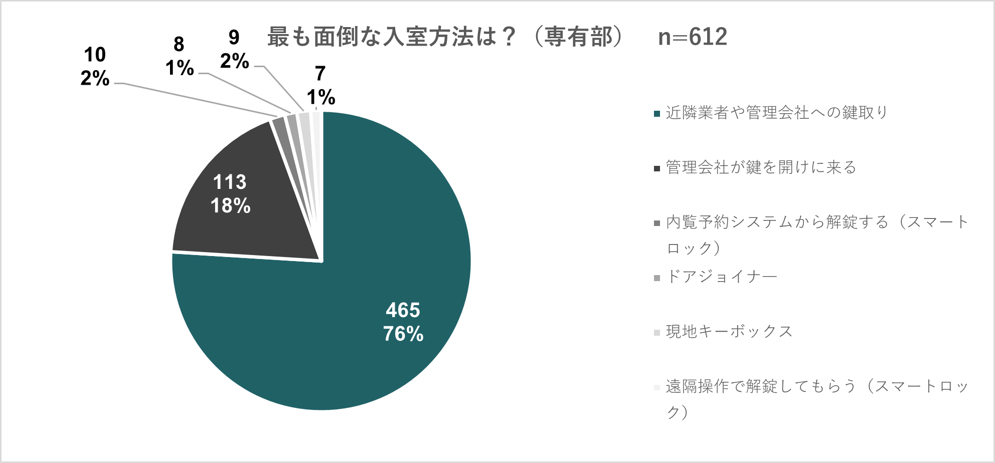 ■もっとも面倒な入室方法は「管理会社への鍵取り」(専有部76.1%/共用部71.7%)