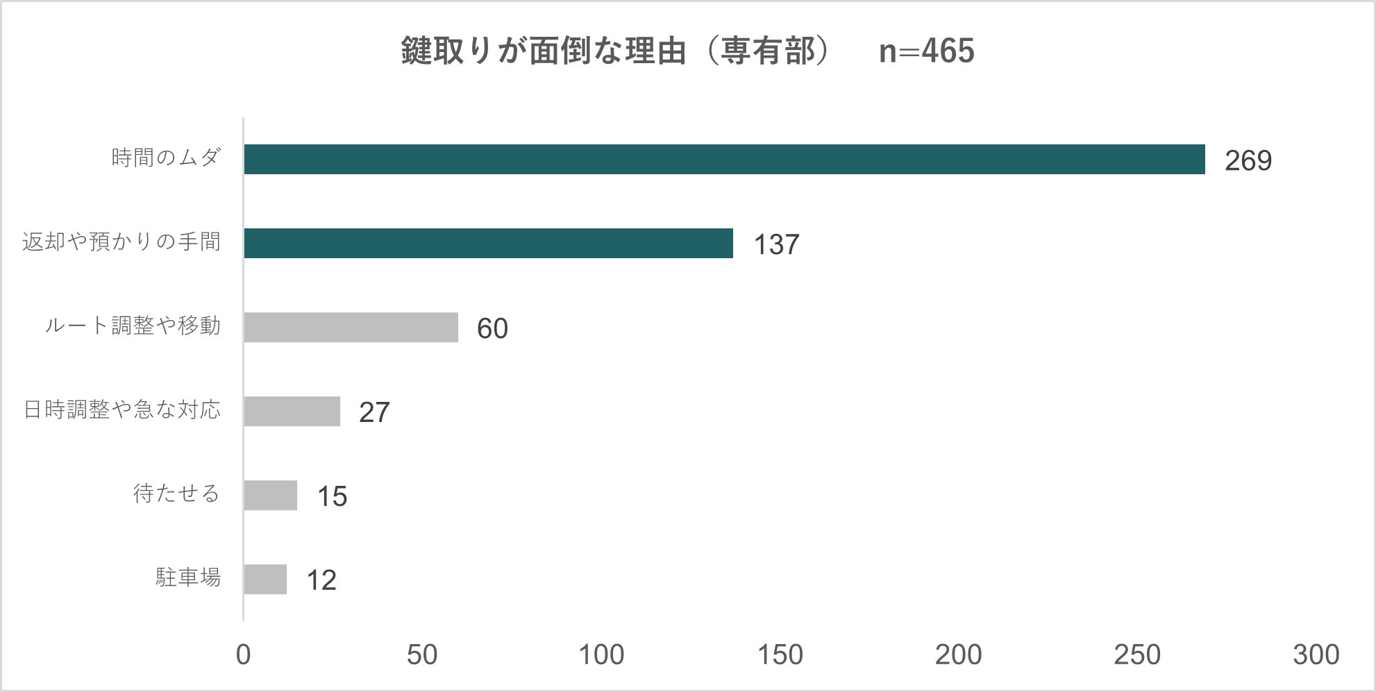 ■鍵取りが面倒な理由は「時間のムダ」「預かりや返却の手間」「日時やルート調整」