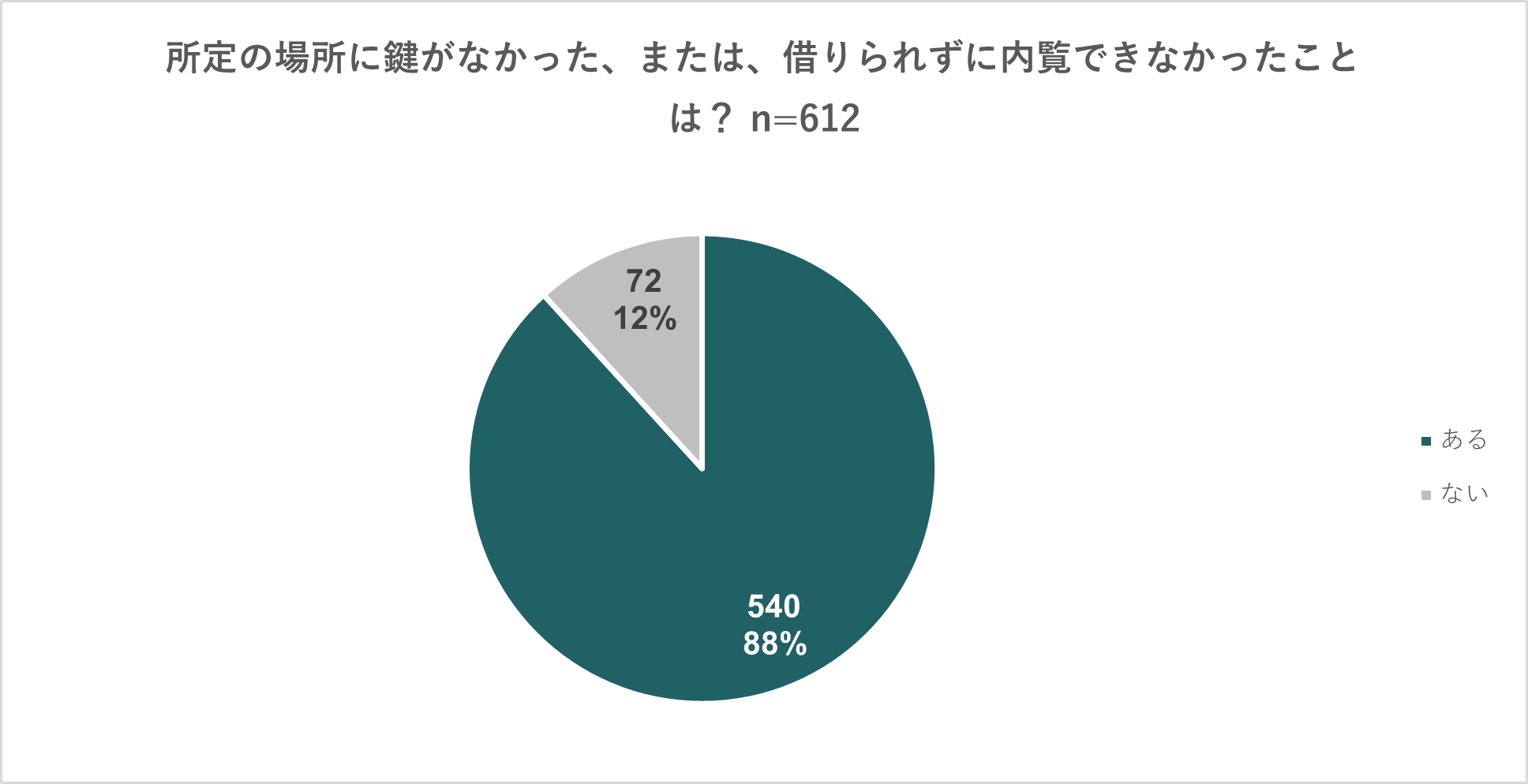 ⇒所定の場所に鍵がなく、内覧が出来なかった経験がある担当者が88.3%存在し、現地キーボックス運用にも課題が残る結果に。