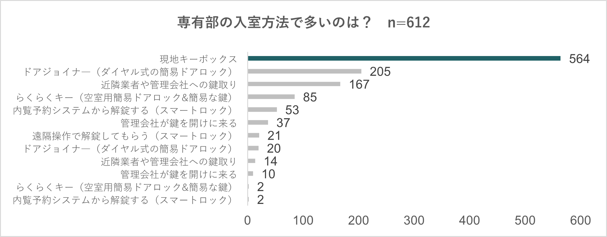 ■入室方法は「現地キーボックス」が選ばれやすい。