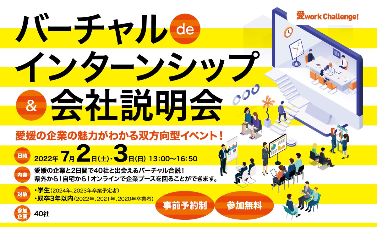 ポート株式会社(代表取締役社長:春日 博文、所在地:東京都新宿区、以下「当社」)は、株式会社チェンジ(代表取締役兼執行役員社長:福留大士、所在地:東京都港区、以下:チェンジ社)と共同で、愛媛県のバーチャルインターンシップの開催を支援いたしますので、お知らせいたします。これはチェンジ社との共同事業「地方自治体・地方企業の雇用DX」の一環として実施しているプロジェクトにおける取り組み実績になります。