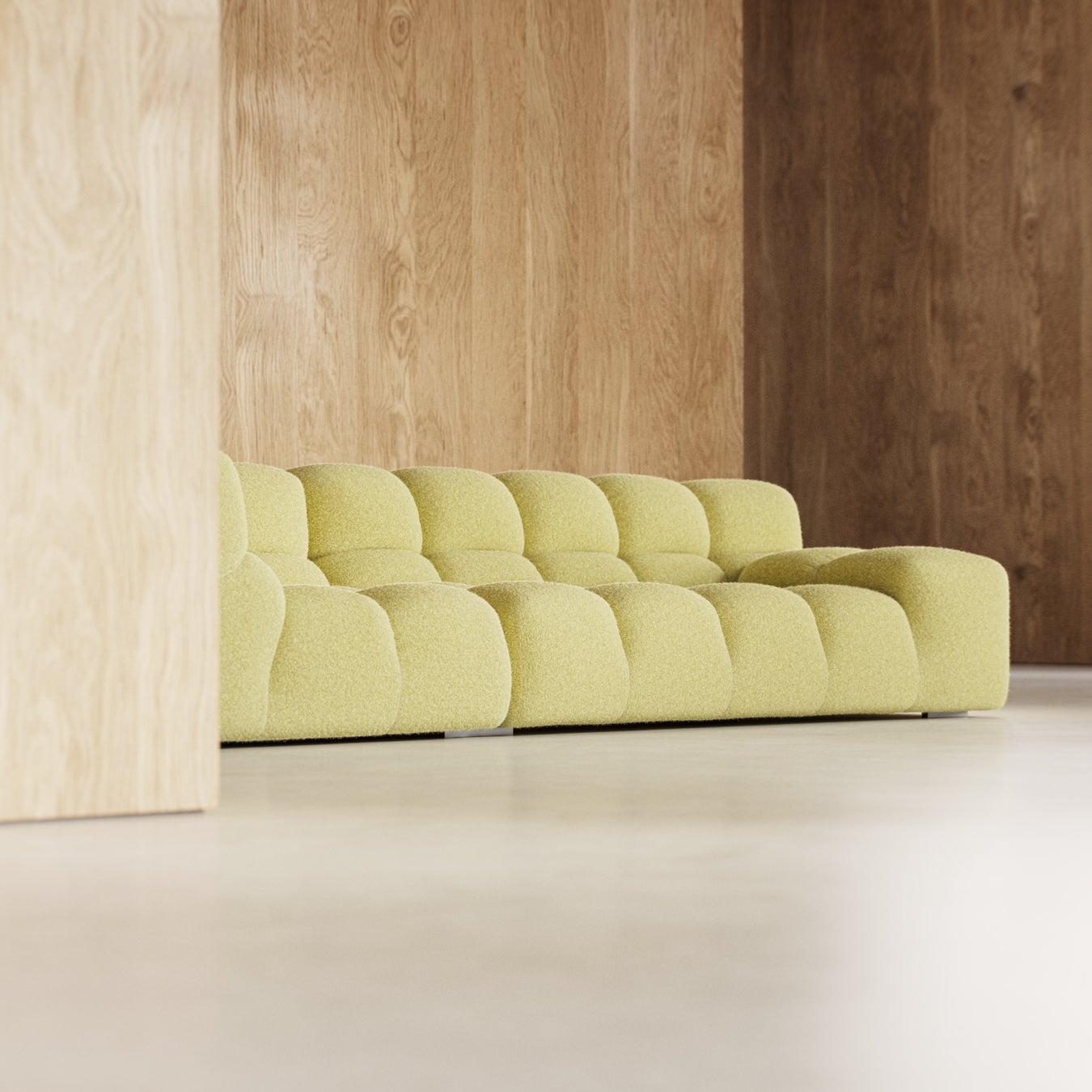 さらに、新たに追加されたカーブモジュールにより、システムの可能性がさらに拡張。より洗練された流動的な空間を生み出す有機的なレイアウトが可能となり、住宅空間はもちろん、ホテルやオフィスなど、これまで以上に多彩なシーンを演出できるようになりました。