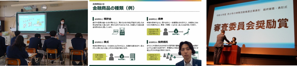 <金融経済教育活動(対面・オンライン)と表彰式の様子>