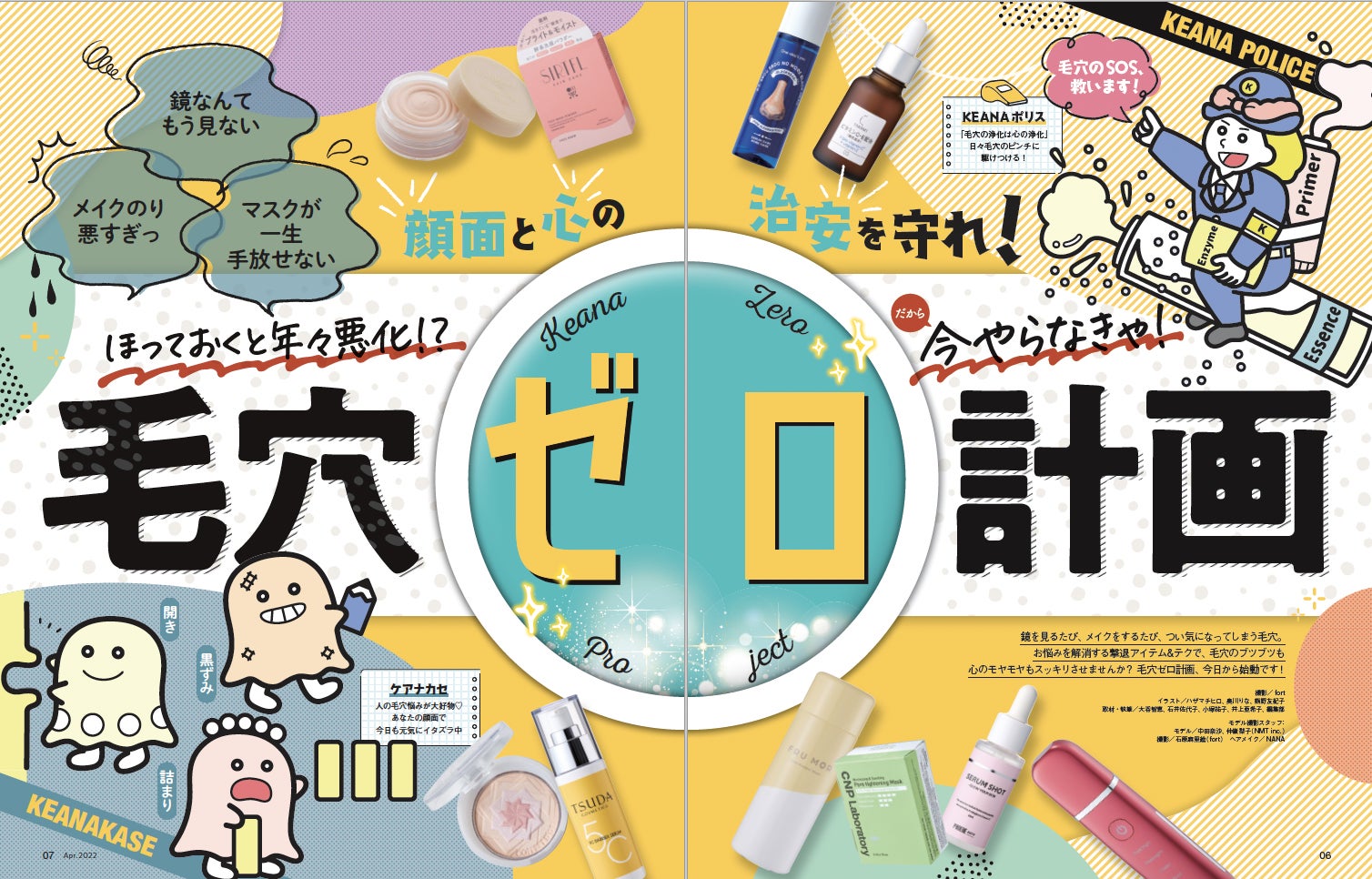 4月号では、気になる毛穴悩みを撃退するアイテム&テクを総力特集。ビタミンC美容液や毛穴カバー下地、酵素洗顔料など、定番から新作まで集めて一斉テスト。本当にキレイになれちゃう優秀アイテムを探しました! 第3特集では、一日中美白・美息をキープできるオーラルケアのベストを発表。そのほかにも、女性のお悩みを解決してくれるデリケートゾーンケアアイテムや、マスクで荒れた肌をいたわりながらオフするクレンジングなど、キレイを叶える情報盛りだくさんでお届けしています!