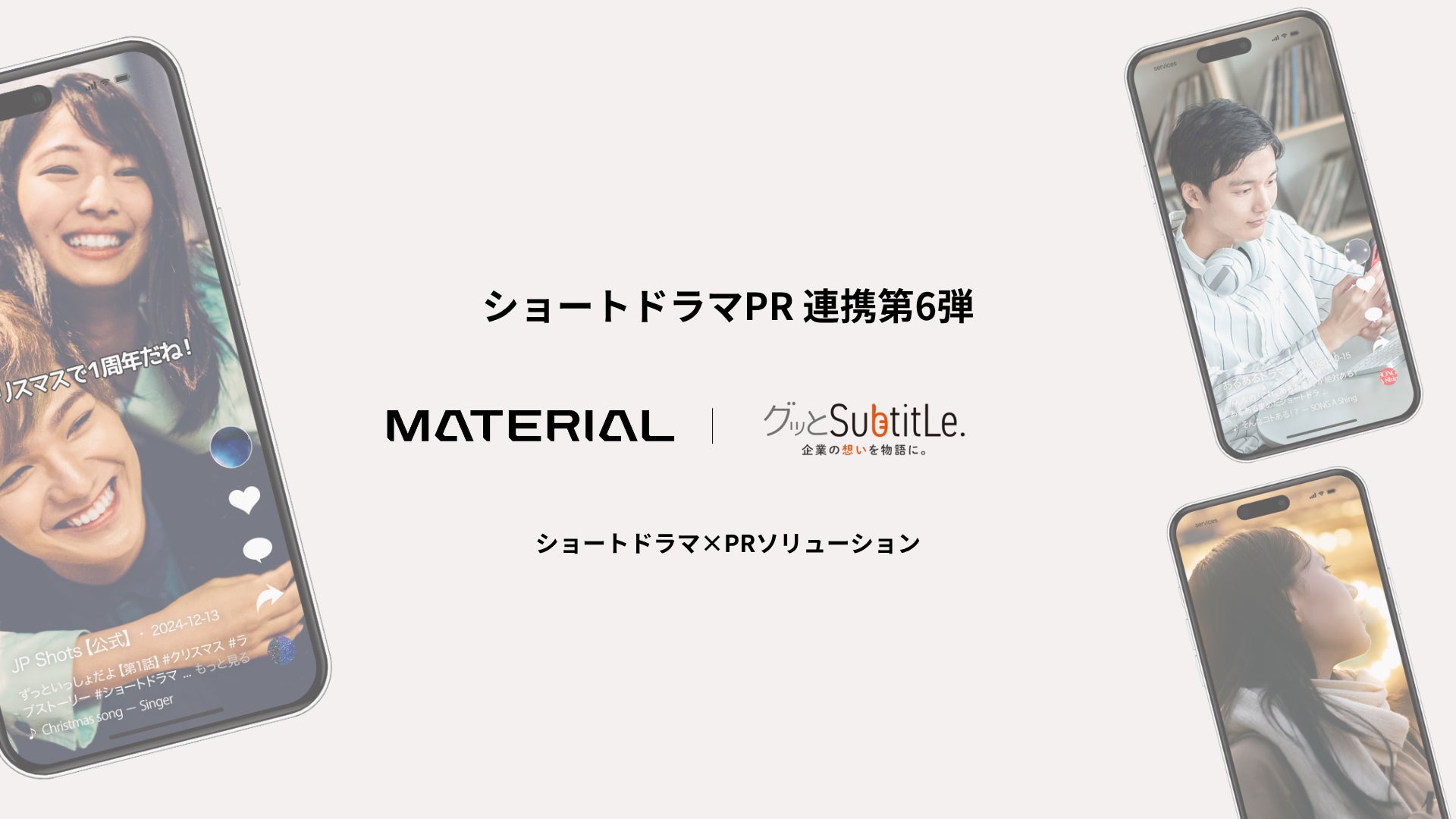 マーケティングコミュニケーションを中心にパブリックリレーションズ全般を支援する株式会社マテリアル(本社:東京都港区 代表取締役社長:青﨑曹 以下:マテリアル)は、本日2025年6月24日より、ショートドラマ大手コンペディション「マイナビショードラアワード2025※1」にて、企業やブランドの魅力を効果的に伝える作品および制作チームを表彰する部門「マテリアルショートドラマPR賞」の大賞を受賞したアカウント「グッとSubtitle(運営会社:株式会社GALOAS 読み:ガロアス)」(本社:東京都中央区 代表取締役:星津 崇人)とサービス連携を開始いたします。