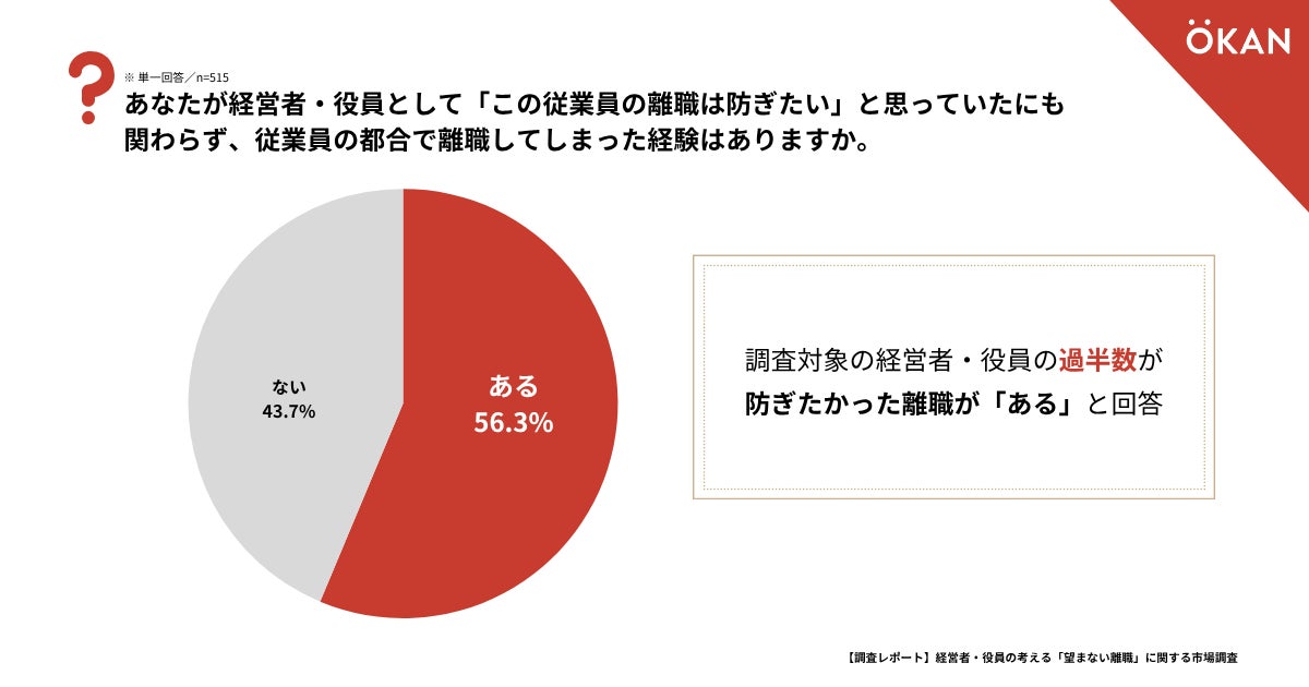 経営者・役員の過半数(56.3%)が「防ぎたかった離職」を経験