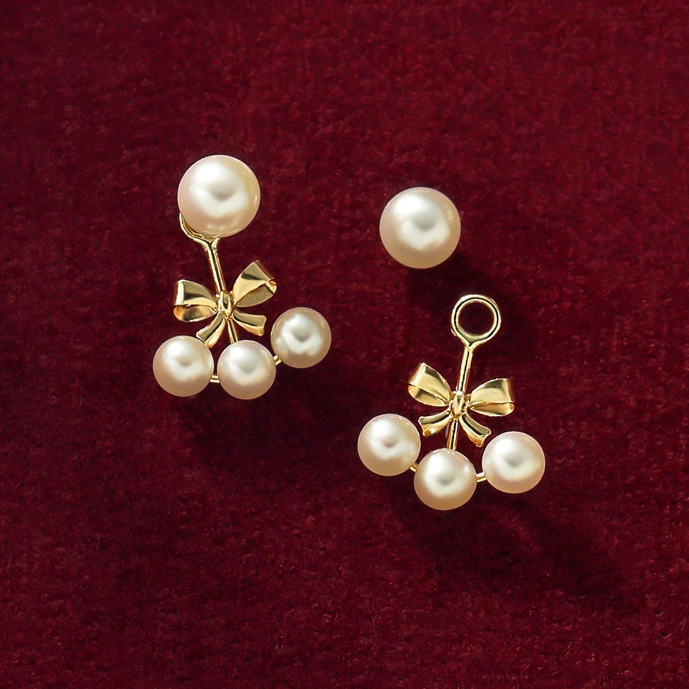 アンティークのフラワーボタンをイメージした「ジェムブルームボタン」は、クラシカルで高級感漂うアコヤパールのネックレスとチェリーズピアス。アコヤパール側を表にすることでシンプルなパールジュエリーとしてもお使いいただけます。