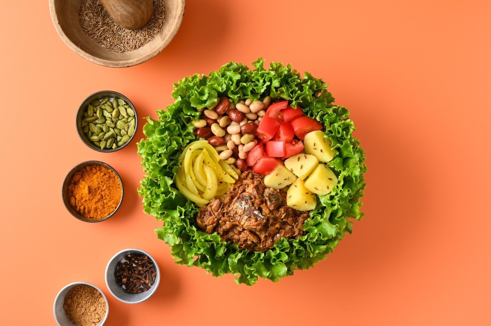 オメガ3を含む国産さばと香辛料を煮込んだカレーが初登場。豆や、クミン香るじゃがいもを合わせることで、満足感を味わえるスパイシーな一皿に仕上げました。